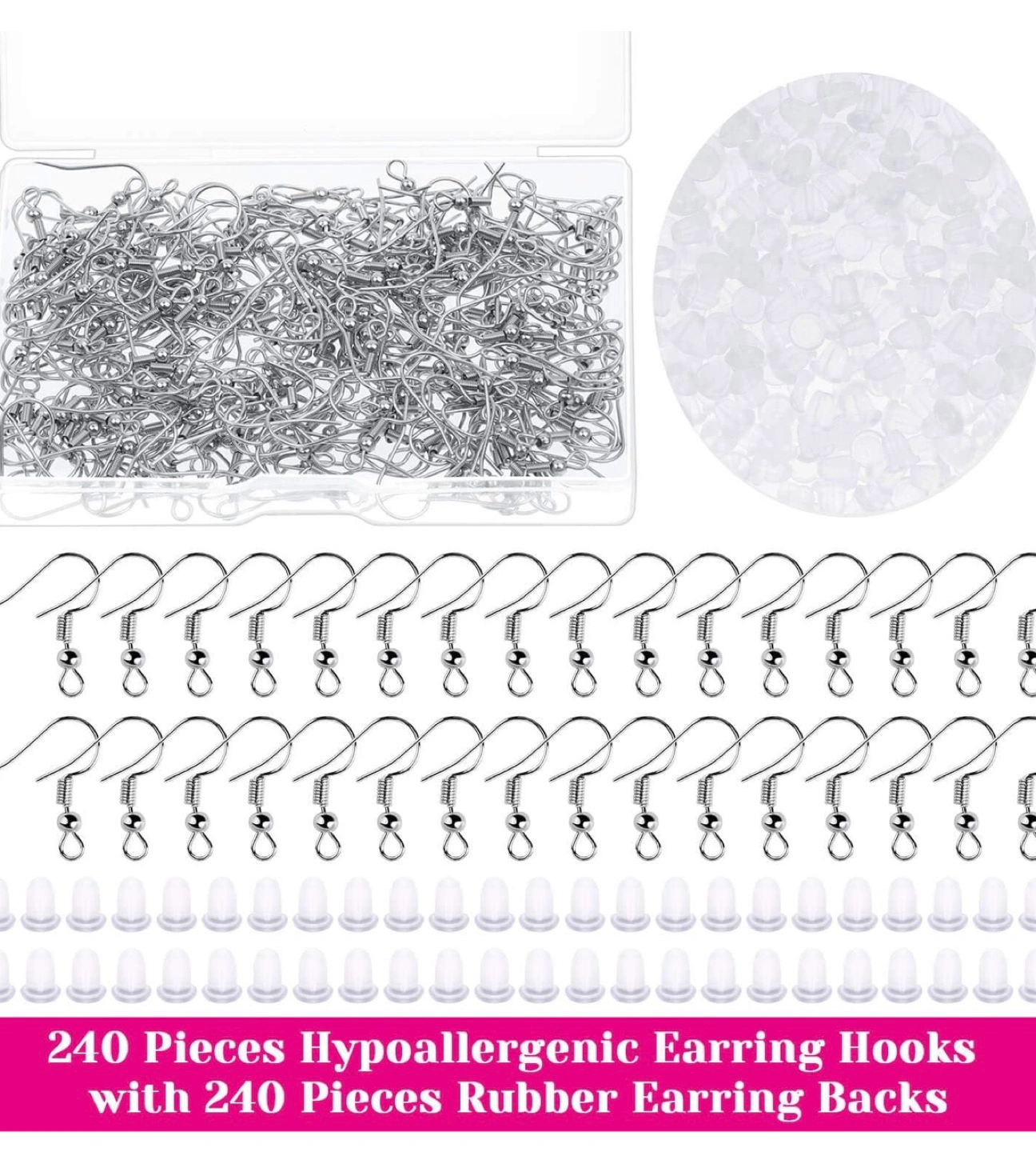 #Silver earring making kit with clear backings. Good for DIY projects or for replacing lost earring parts. Earring Hooks for Jewelry Making Supplies, 240pcs Hypoallergenic Earing Fish Hooks Stainless Steel Earing Hooks Kit with 240pcs Earring Backs for Jewelry Earring Making Supplies Earring Making Supplies: Earring making kit comes with 240 pieces hypoallergenic earring hooks and 240 pieces clear earring backs, perfect for earring craft supplies Hypoallergenic Earring Hooks: The fish hook earrings for jewelry making are made of surgical stainless steel that are not only hypo allergenic and friendly to sensitive ears, but also sturdy and hard to break. Great for long time use Great Value Earring Findings: The earring making supplies set also comes with 240 pieces hook earring backs, which are made of silicone rubber that are clear and light weight. These earring backings help keep earrings on and stay in place, work great in securing your earrings Plastic Case for Easy Storage: The earing hooks for jewelry making are well packed in a clear handy plastic case, that is convenient to store and easy to carry with Ideal for Earring making & Earring Repair: These earring hooks for jewelry making are great to make all kinds of earrings by simply adding charms and pendants. You can make your own style earrings or replacement the earring fish hook with these earring fish hooks hypoallergenic, which are suitable for sensitive ears *6 pack available *Pick up near 14 Avenue & Markham Road or 500 Esna Park Dr, Markham *Shipping is available with an extra fee *Thank you for your interest in these items.