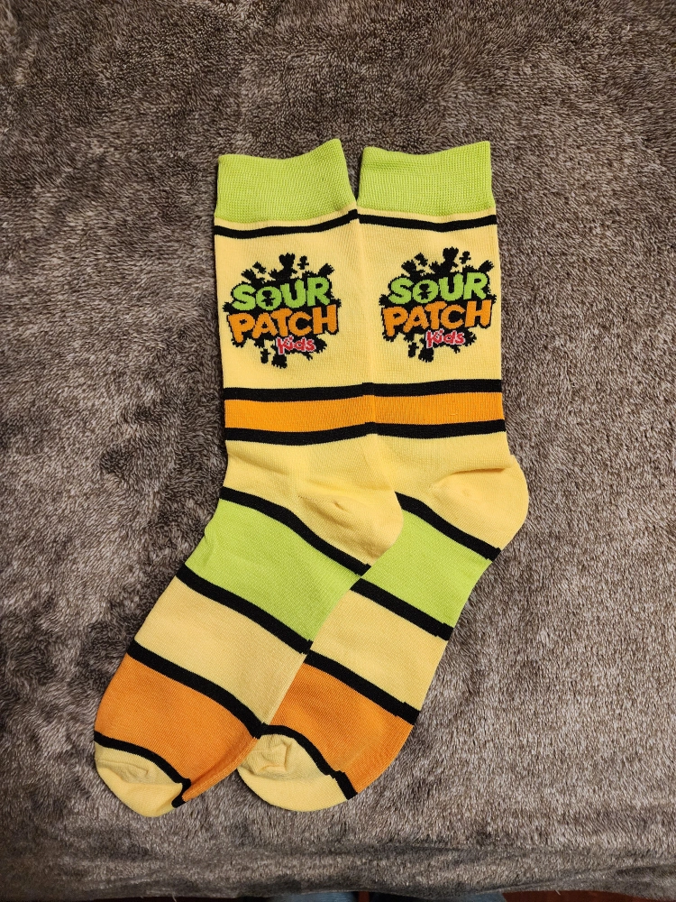 Brand new. & never worn. Neon coloured mid-calf socks from Sour Patch Kids!! Men's S/M Women's M/L Pick-up at Sheppard West subway station and cash only please :)