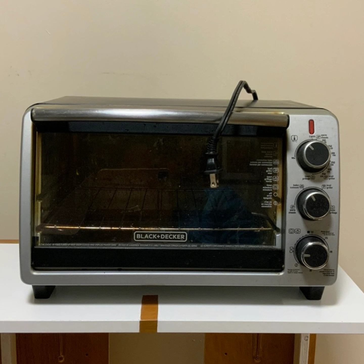 As it with the baking rack. Condition: Well used. One of the heating tubes may be defective so the temperature cannot go up too high. Not sufficient for baking but can still be used for toasting (a bit slower)