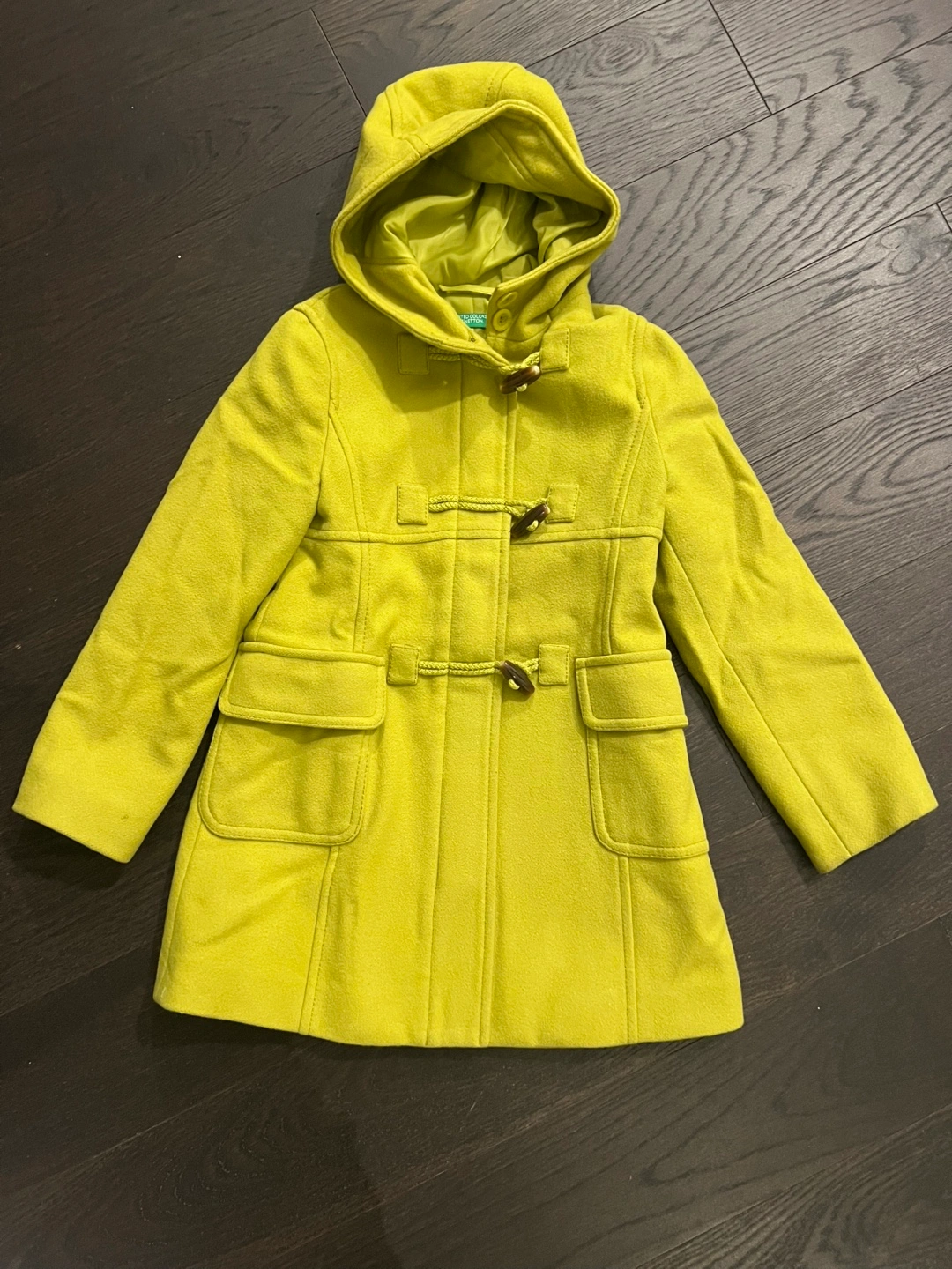 Green peacoat with a hood and toggle closures. Pockets on the front. Like new. Sizing around 5-6.