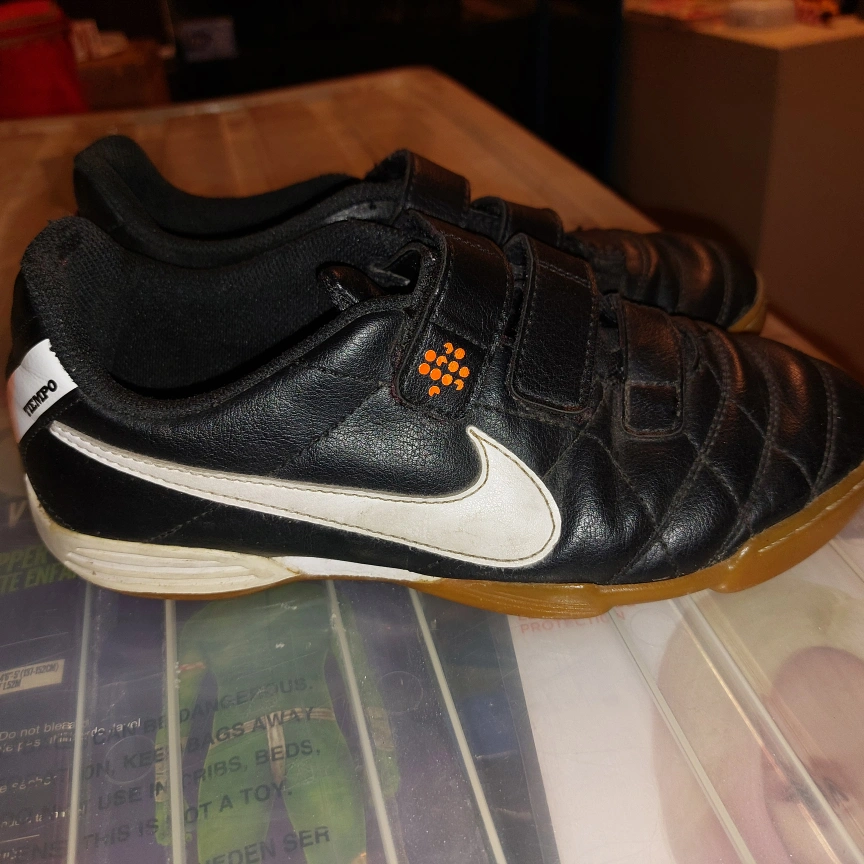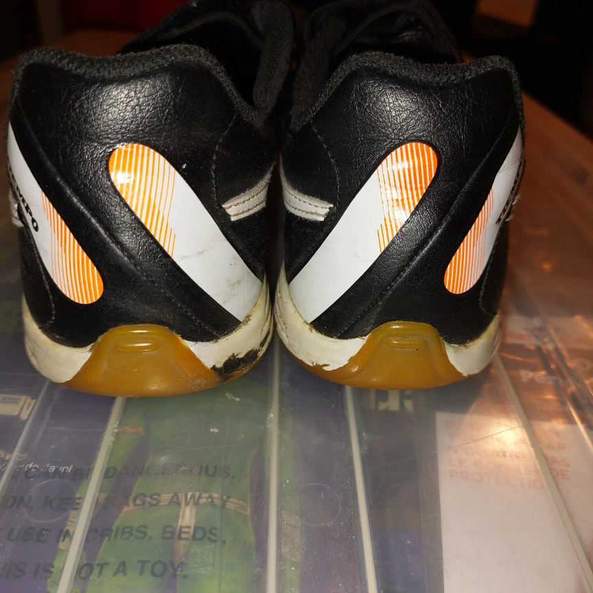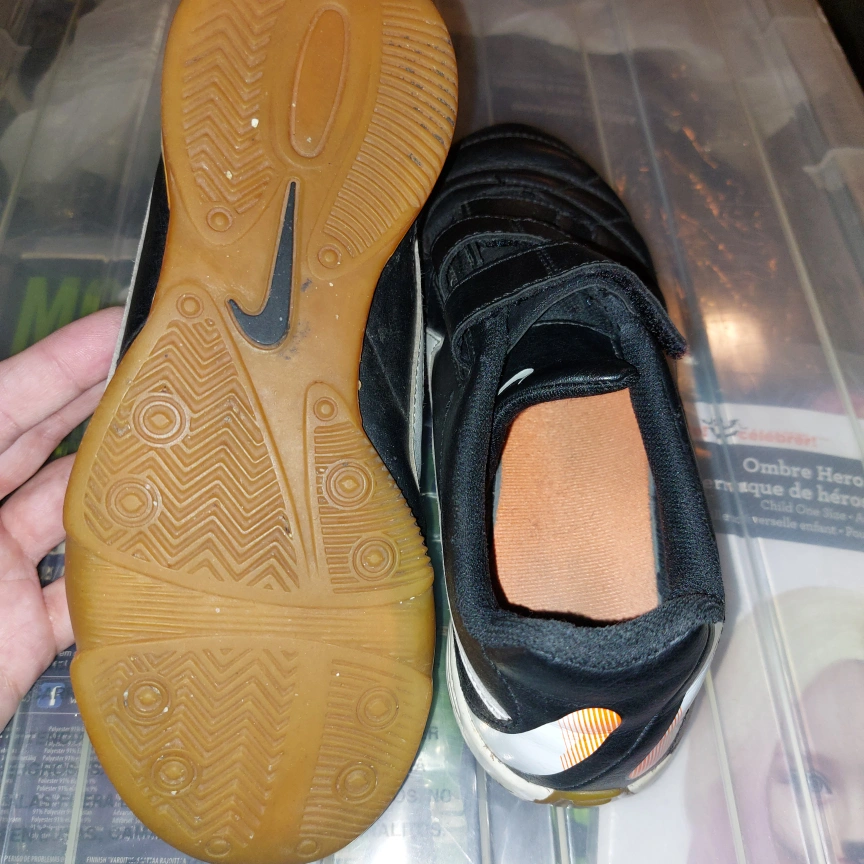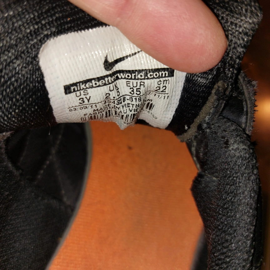 PU: CARLTON/SHERBOURNE AREA Size 3Y, black with white accents, orange detailing on heel.
