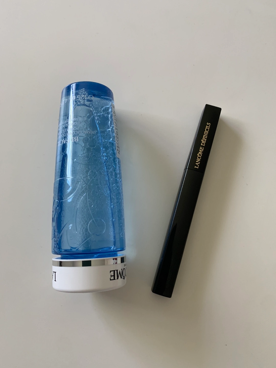 Lancôme makeup set includes a bottle of facial toner and a black mascara. Both products are new, unopened.