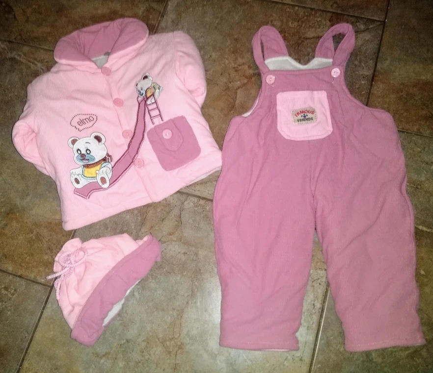 Girl's 3 PC pink snowsuit includes pink coat with bears on it, pink snowpants with suspenders and matching pink hat. In excellent condition. Girl's Size 3 toddler