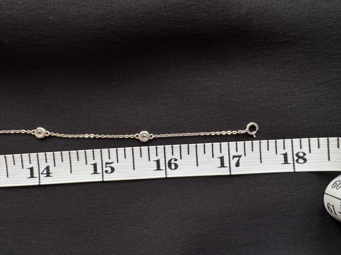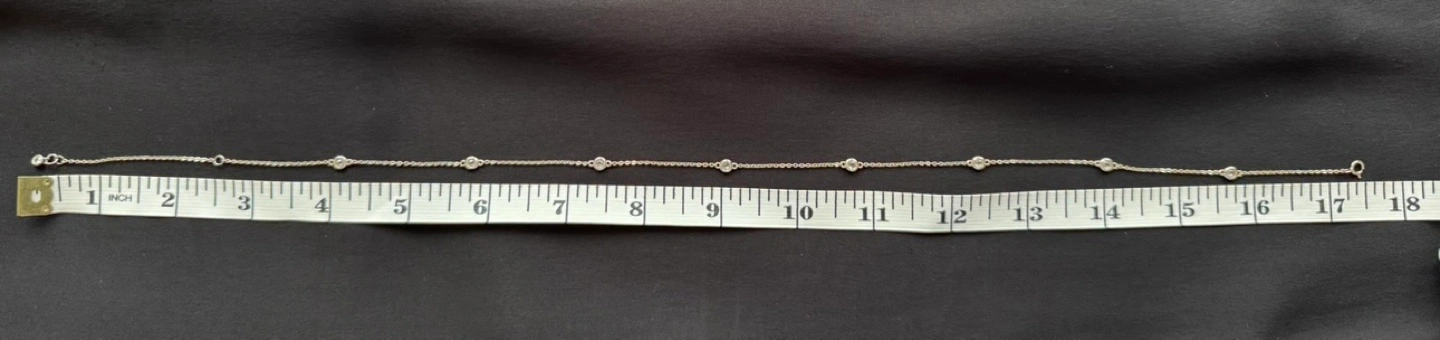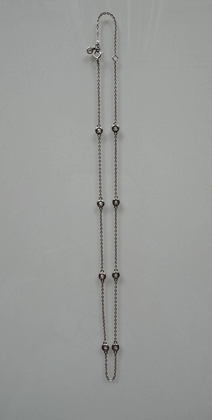 Sterling silver chain necklace with cubic zirconia accents. Has a lobster clasp closure. This is gold plated but has worn somewhat off due to wear.
