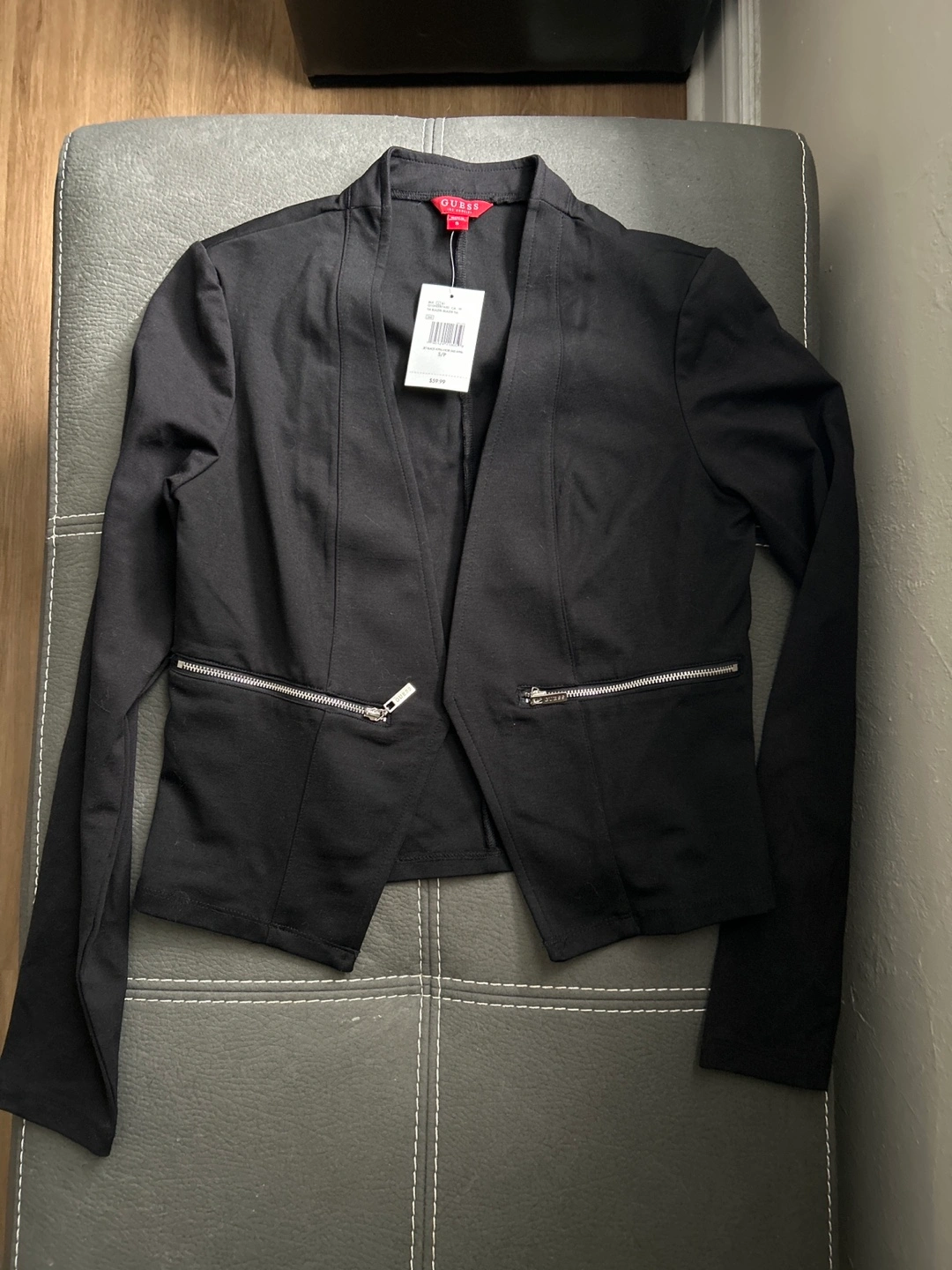 Black blazer with zipper detailing. Size small.