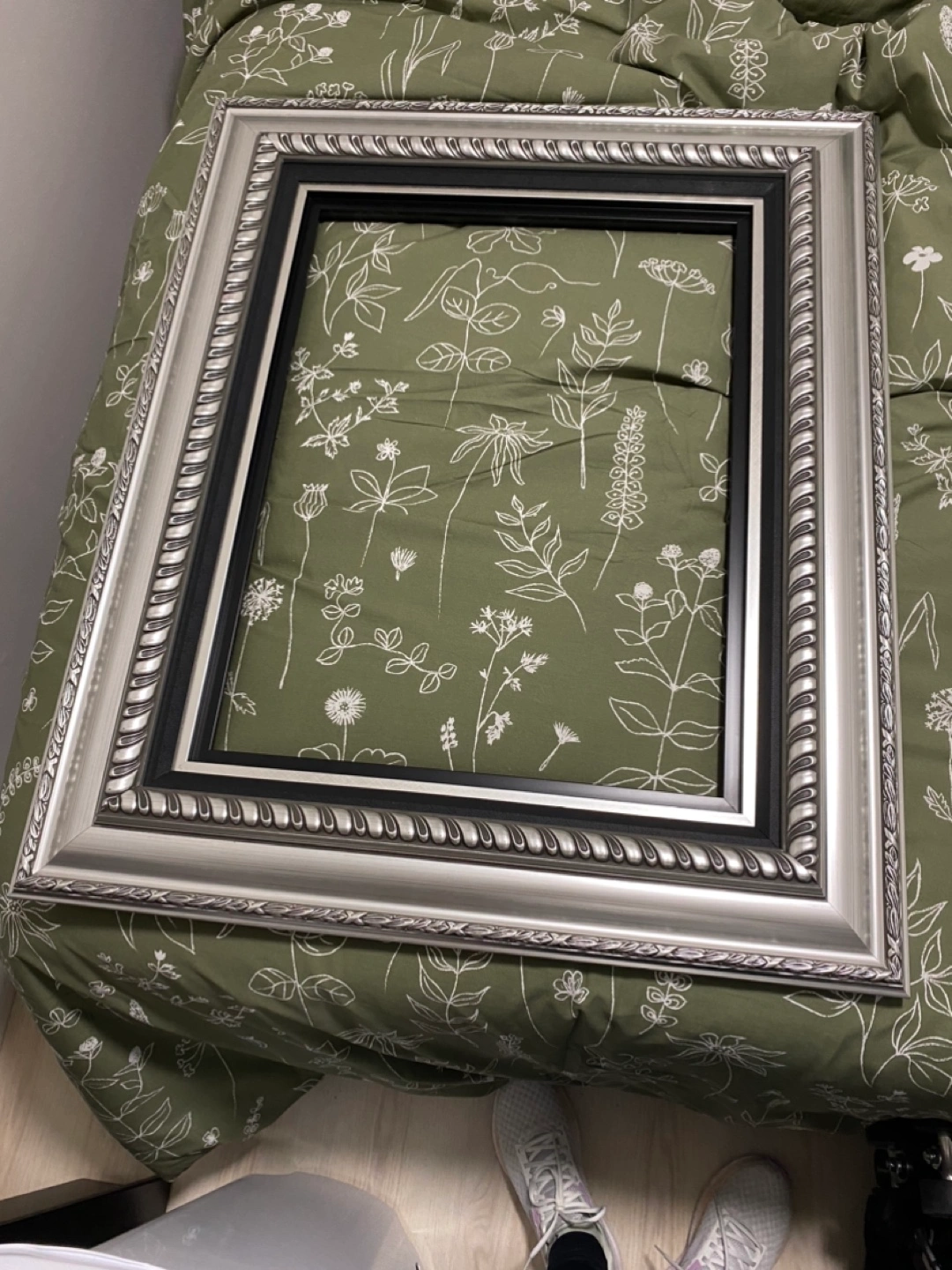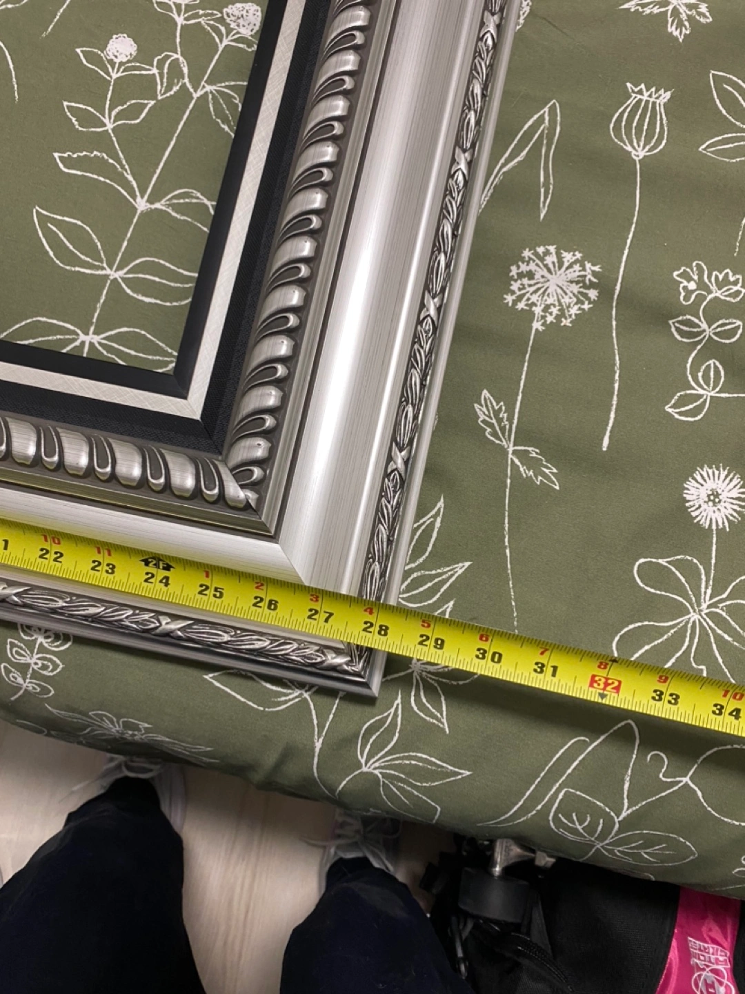 Large ornate silver picture frame with a black inner border. Approximately 29 inches by 34 inches.