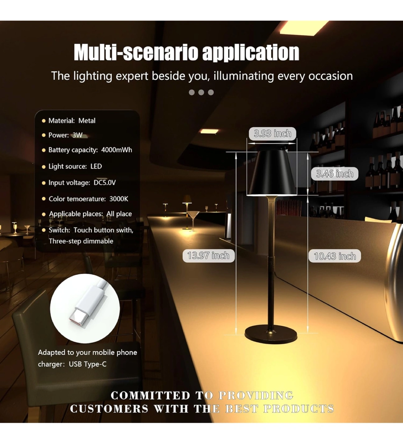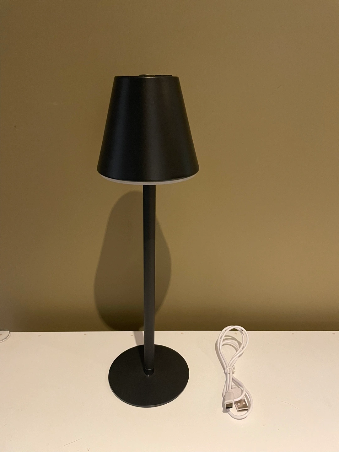 Brand new in box. Modern LED Cordless Table Lamp, 4000mAh Rechargeable Battery, 3 Level Brightness Night Light, Metal Shell, Minimalist Design, for Couples Dinner/Coffee Table/Restaurant/Bedroom, Black Features & details 【Minimalist Design】- The appearance of this lamp adopts a simple Cone design, Almost can match every scene and style. Elegant and exquisite shape, very fashionable and warm light, giving you a warm atmosphere, suitable for bars, bedroom, restaurants, reading and so on. 【Cordless Design】The overall material is high-quality metal with Matte Coating Process. Built-in 4000mAh high-quality rechargeable lithium battery, Up to 5-20 hours of battery life. Get rid of the shackles of traditional wiring, unlimited usage scenarios. 【Exquisite function】This lamp uses high-quality LED chips, power is 1-5w, 3 levels of metal touch button adjustment, each level is matched with different usage scenarios, the first level is suitable as a night light, the second level can be used as an atmosphere light , The third gear can be used for lighting, dining and reading. 【Gentle on the eyes】-Circular light source design, 360°no dead angle lighting area, Flicker-free LED integrated light source, ensures visual comfort. *Pick up near 14 Avenue & Markham Road or 500 Esna Park Dr, Markham *Shipping is available with an extra fee *Thank you for your interest in these items.