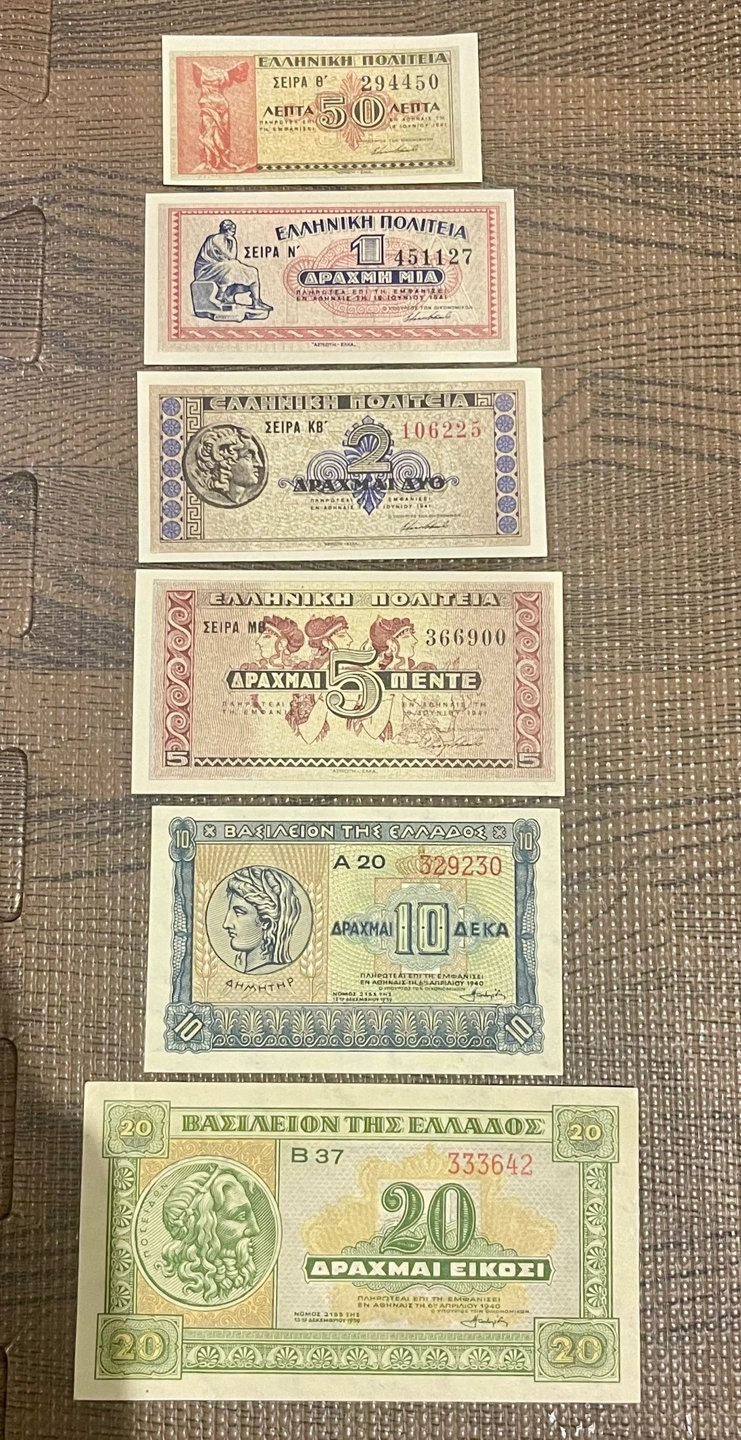 FULL SET . Collection of Greek Drachma banknotes. Includes various denominations.
