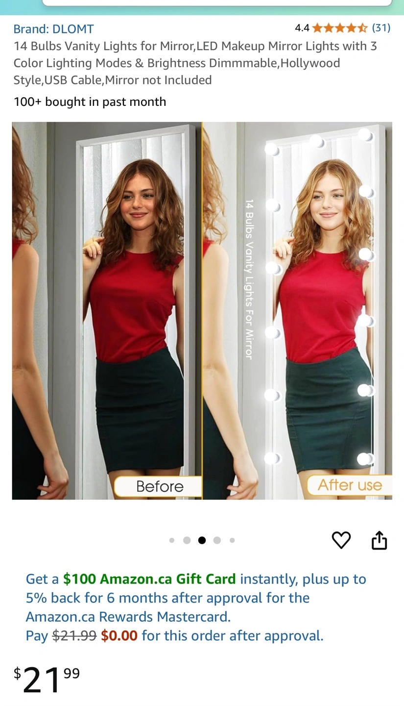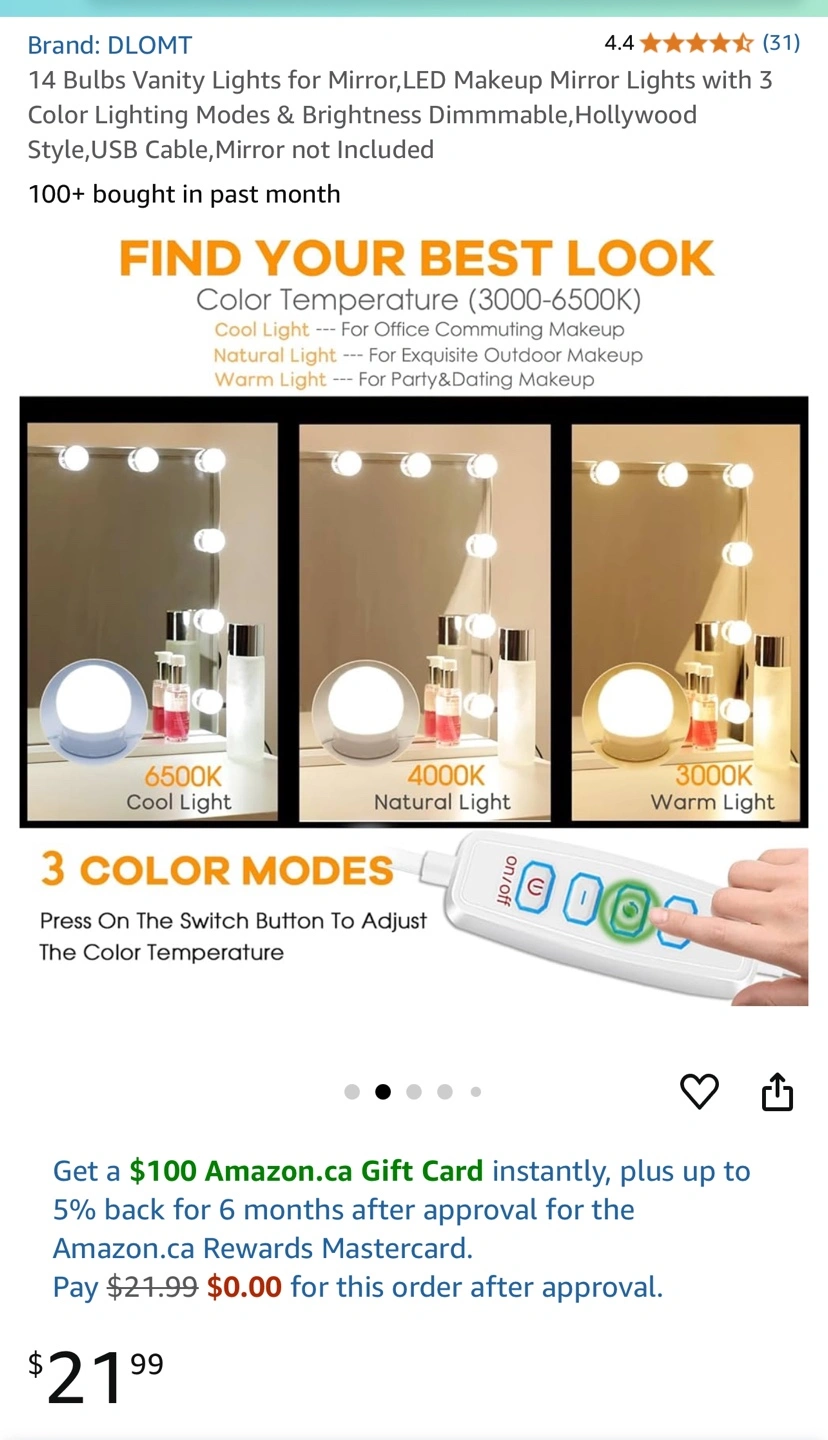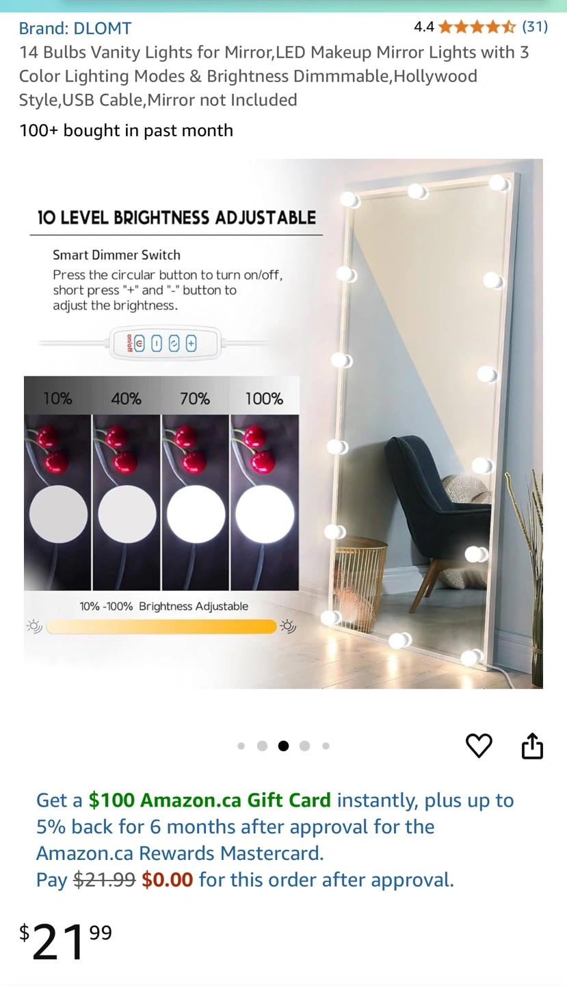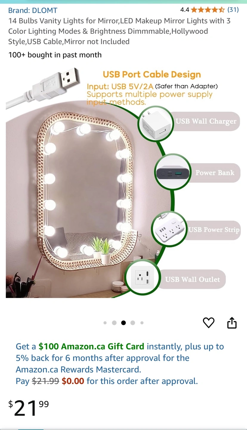 14 Bulbs Vanity Lights for Mirror, LED Makeup Mirror Lights with 3 Color Lighting Modes & Brightness Dimmable, Hollywood Style, USB Cable, Mirror not Included BRAND NEW IN BOX Pick up Richmond Hill