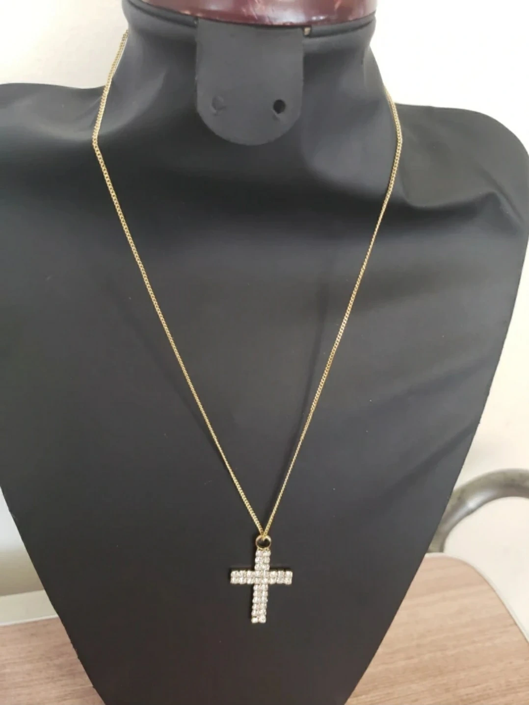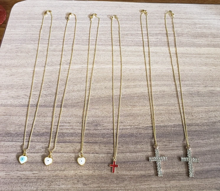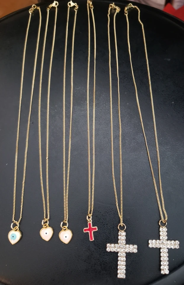 $5 each. brand new Gold plated chain necklace with a crystal cross pendant 18"and evil eye charms 17".perfect Christmas gift for your loved one.