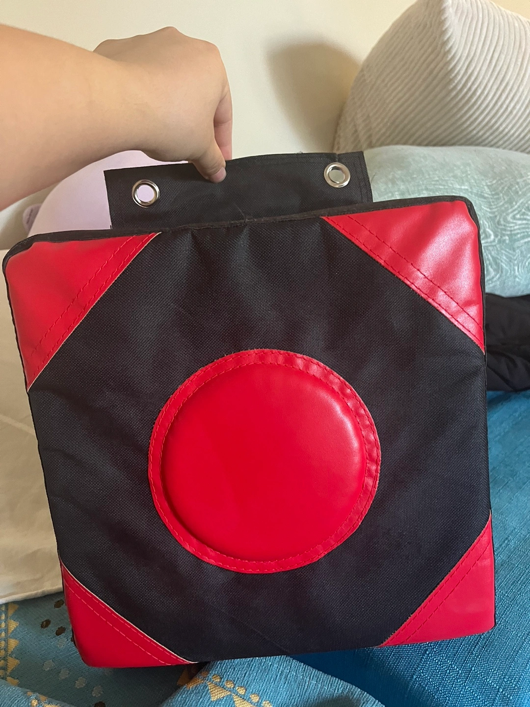 Black and red kickboxing training pad. Has two grommets for hanging. (Wall Punching Pad) 30cm / 30cm