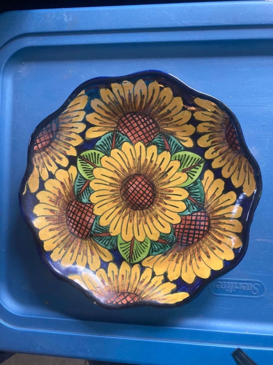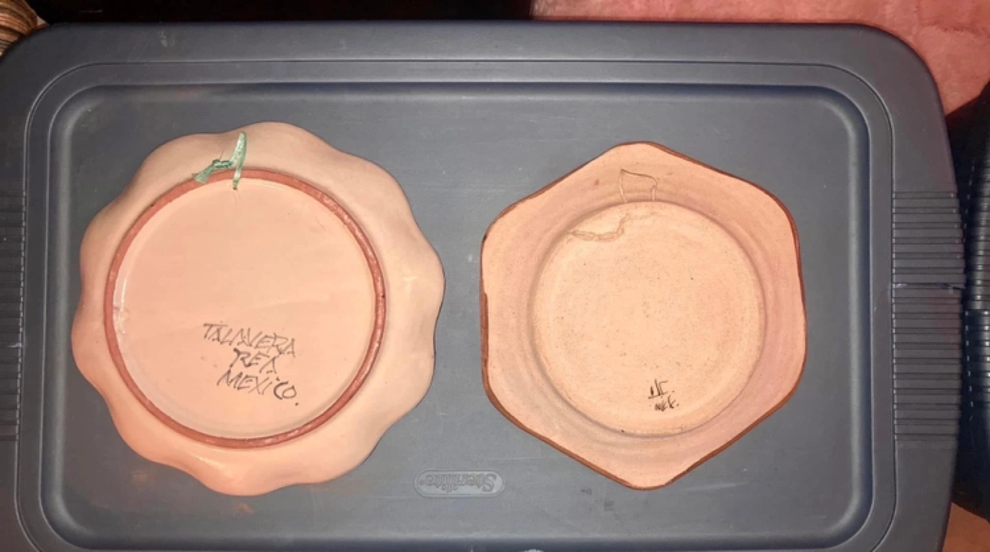 Two Talavera plates. Both plates feature unique designs. One plate features a sunflower design, the other features a bird design. Both plates are 11 inches in diameter. If post still up , then it’s still available. For both together. Will not separate. Hanging plates from Mexico 🇲🇽 in excellent condition. From a smoke free home . Pick up ONLY.$6 firm . No delivery no shipping no holds first come first served.