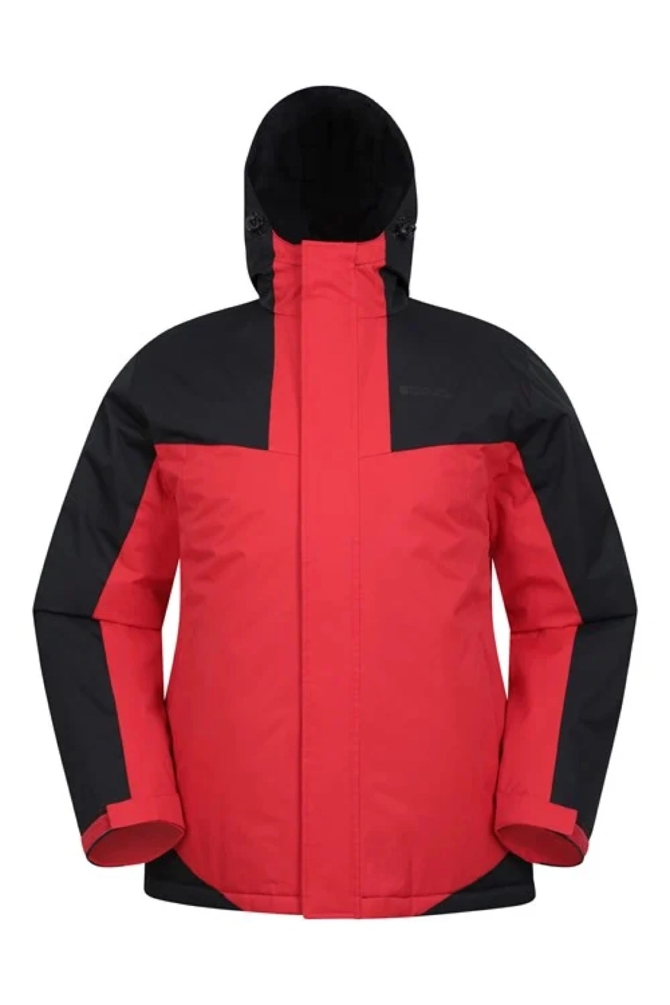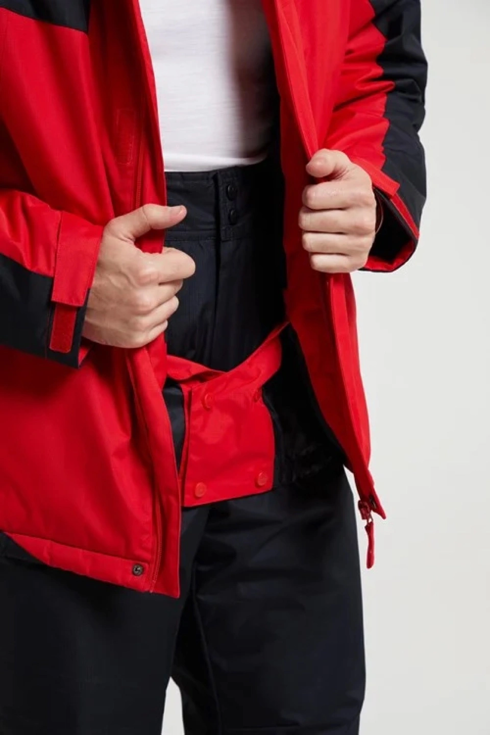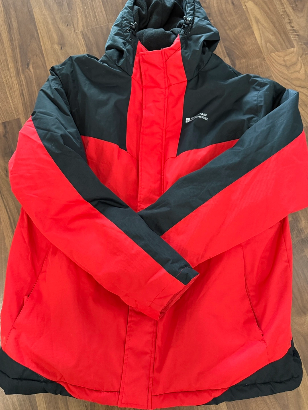 Men's ski jacket with a red and black colour scheme. Includes a hood. Size: XL