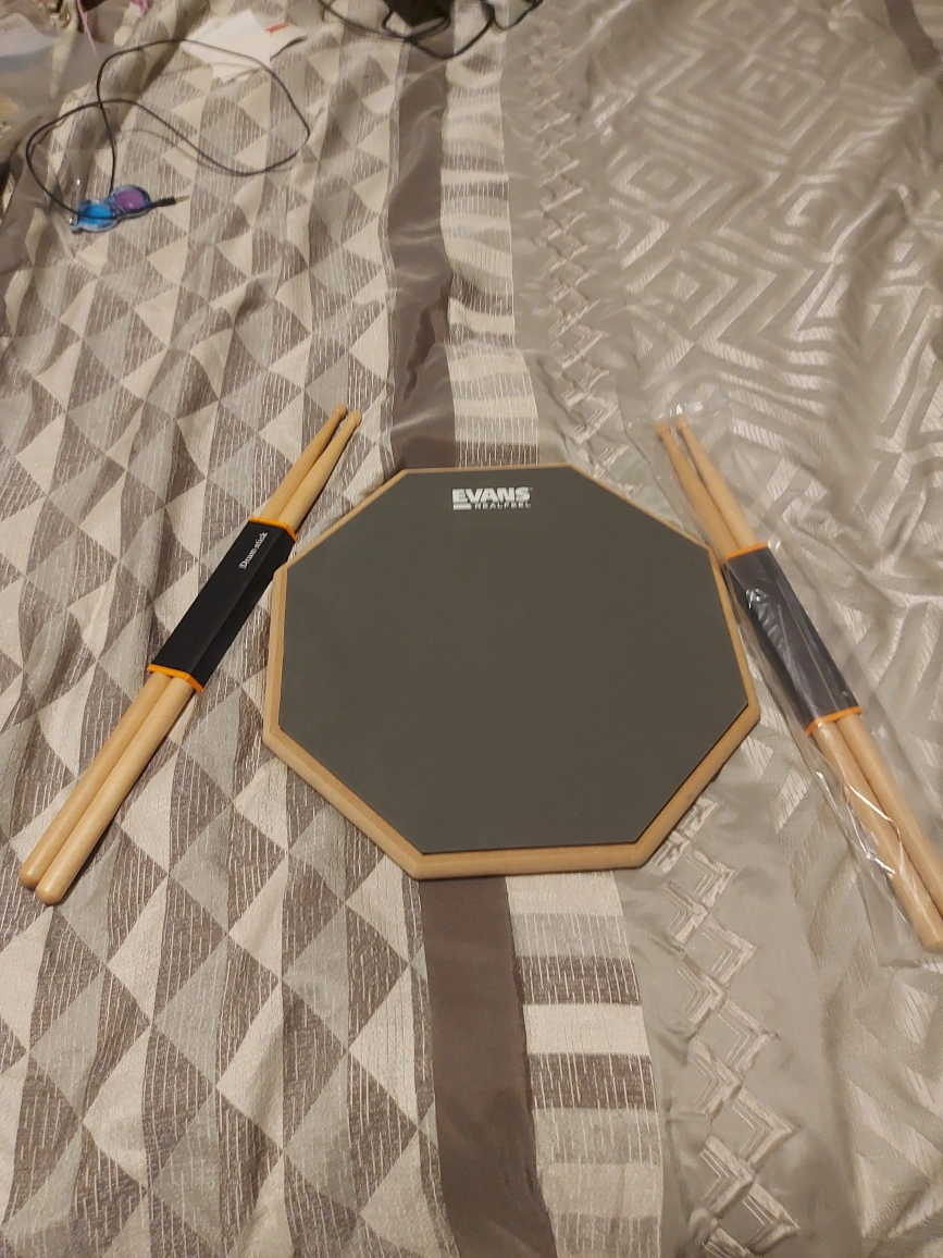 Got these pads and drumsticks a while back. While the sticks are not Vic Firths they still hold up and play well. They are barely used and there is some slight scratches on the pad from when I did jam on it. Price is negotiable but not by much.