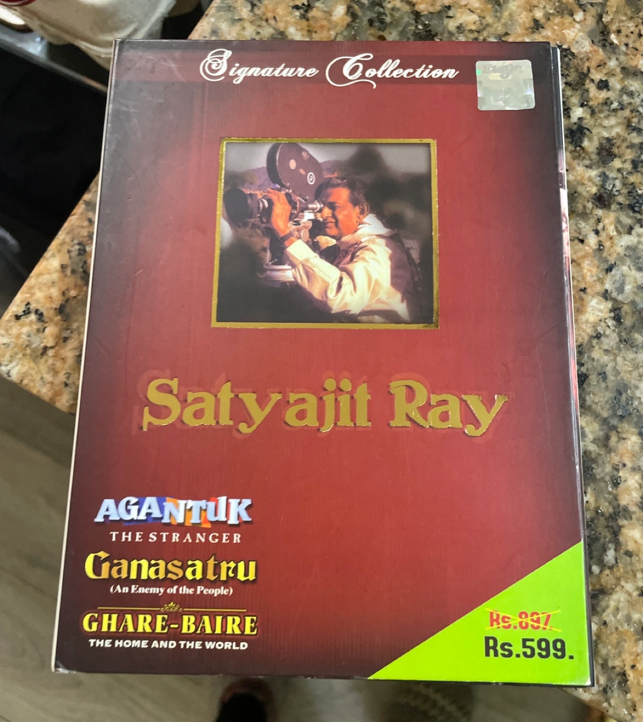 DVD box set featuring three films by Satyajit Ray: Agantuk, Ganasatru (An Enemy of the People), and Ghare-Baire (The Home and the World).