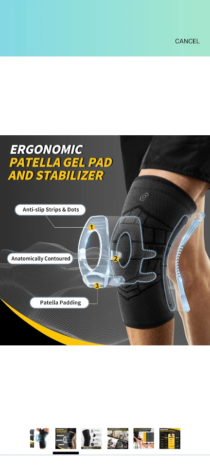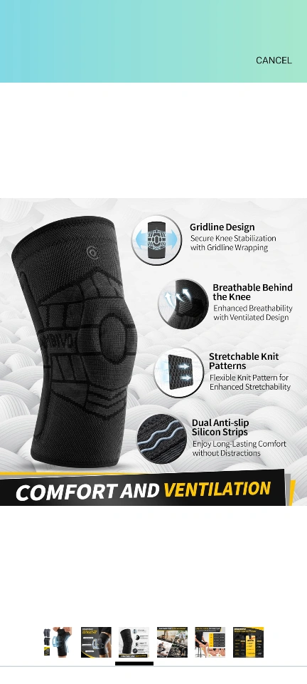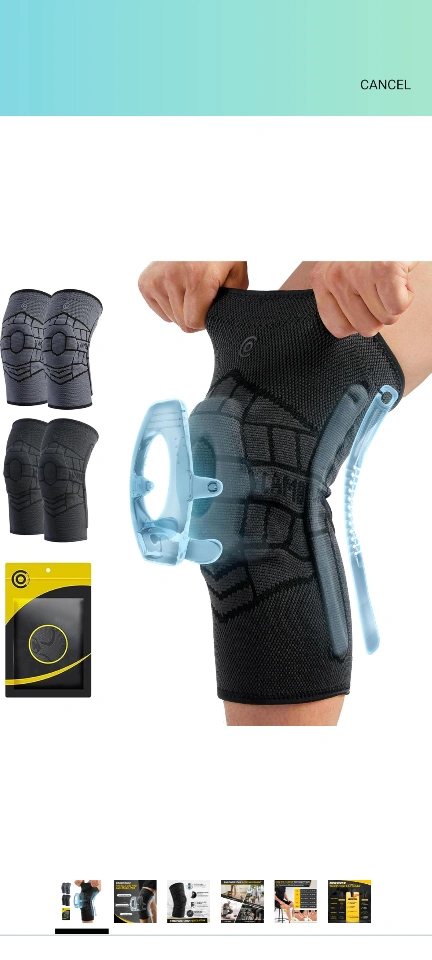 Pair of knee braces. Breathable, comfortable, and with gel pad.