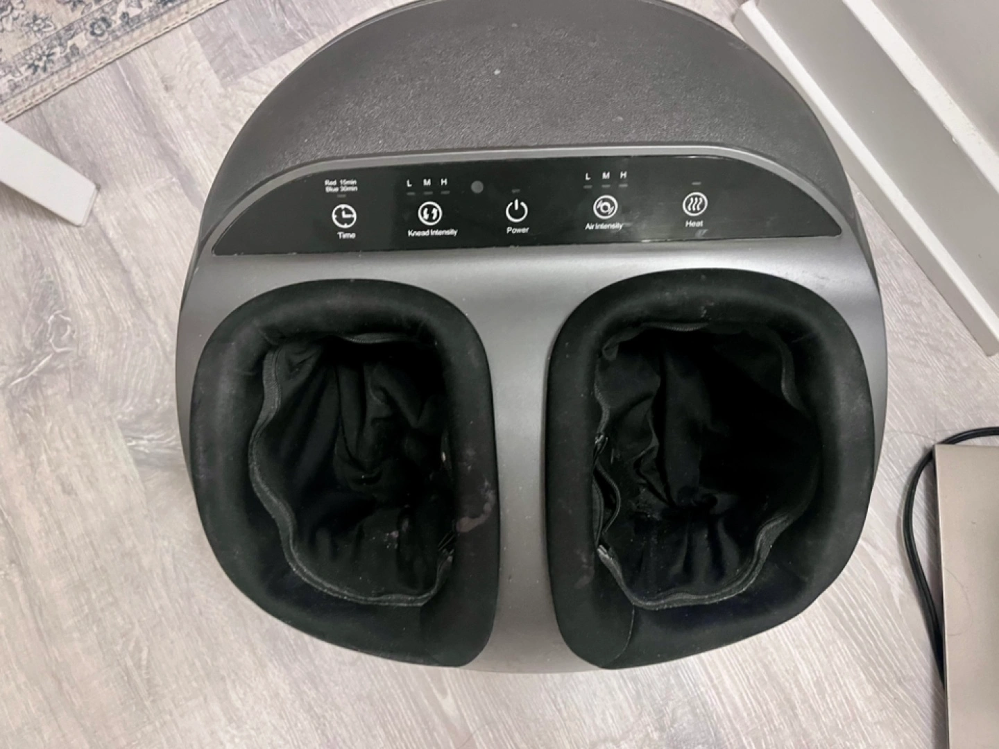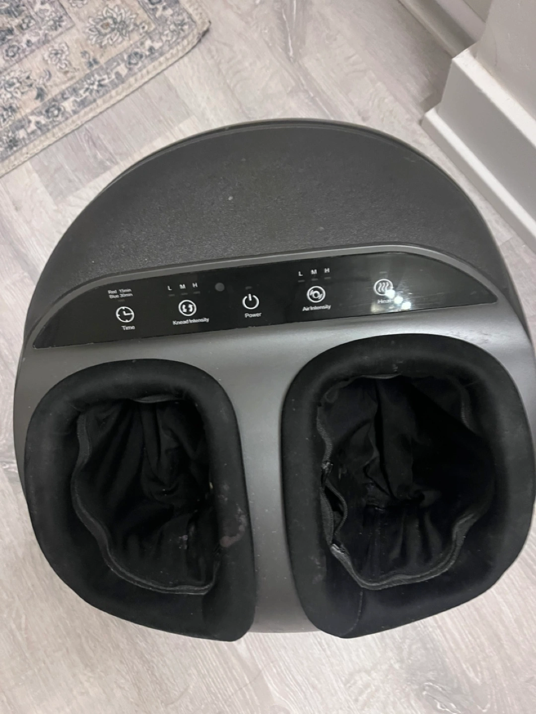 Foot massager with heat, air compression, and kneading options.