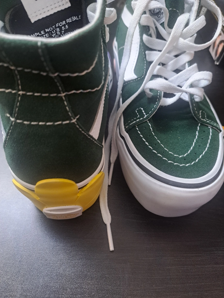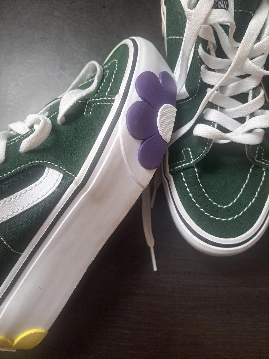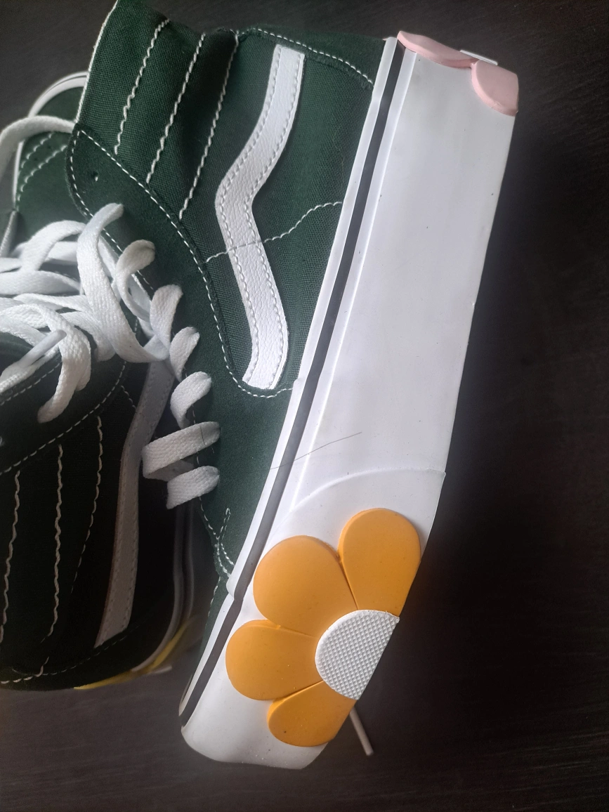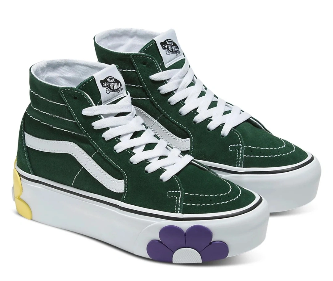 VANS Women's SK8-HI Tapered Stackform OSF Platform Sneakers in Green/White Size: 5.5 Brand New Rare Style Material(s): Suede / Canvas Colour(s): Green / White - Platform sneakers - Textile lining - Vans original waffle outsole - 1.34'' platform - Lace closure - Slender silhouette - Oversized floral details Retail $110 My cost: 45 Firm.