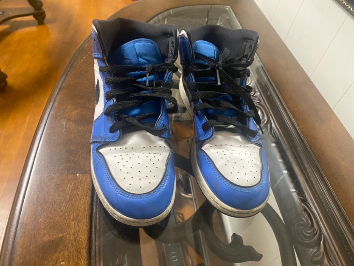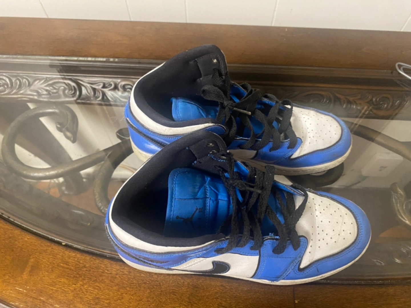 Size 7 Blue and white. Worn but in decent condition. Good for casual wear or collecting.