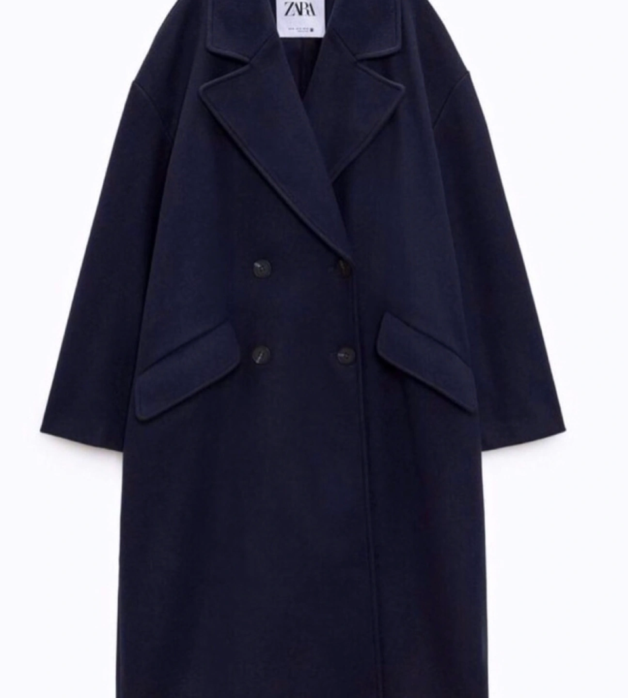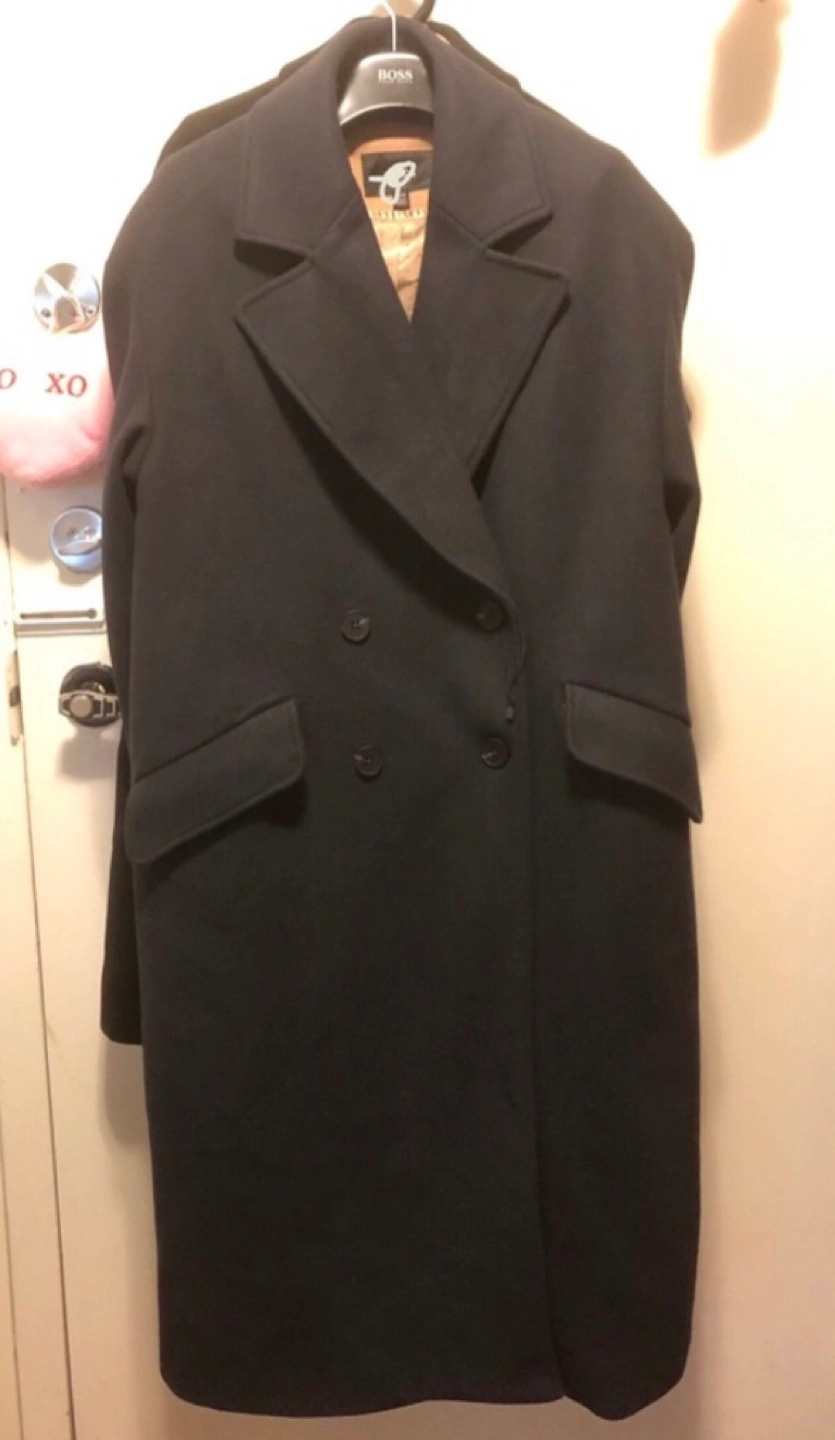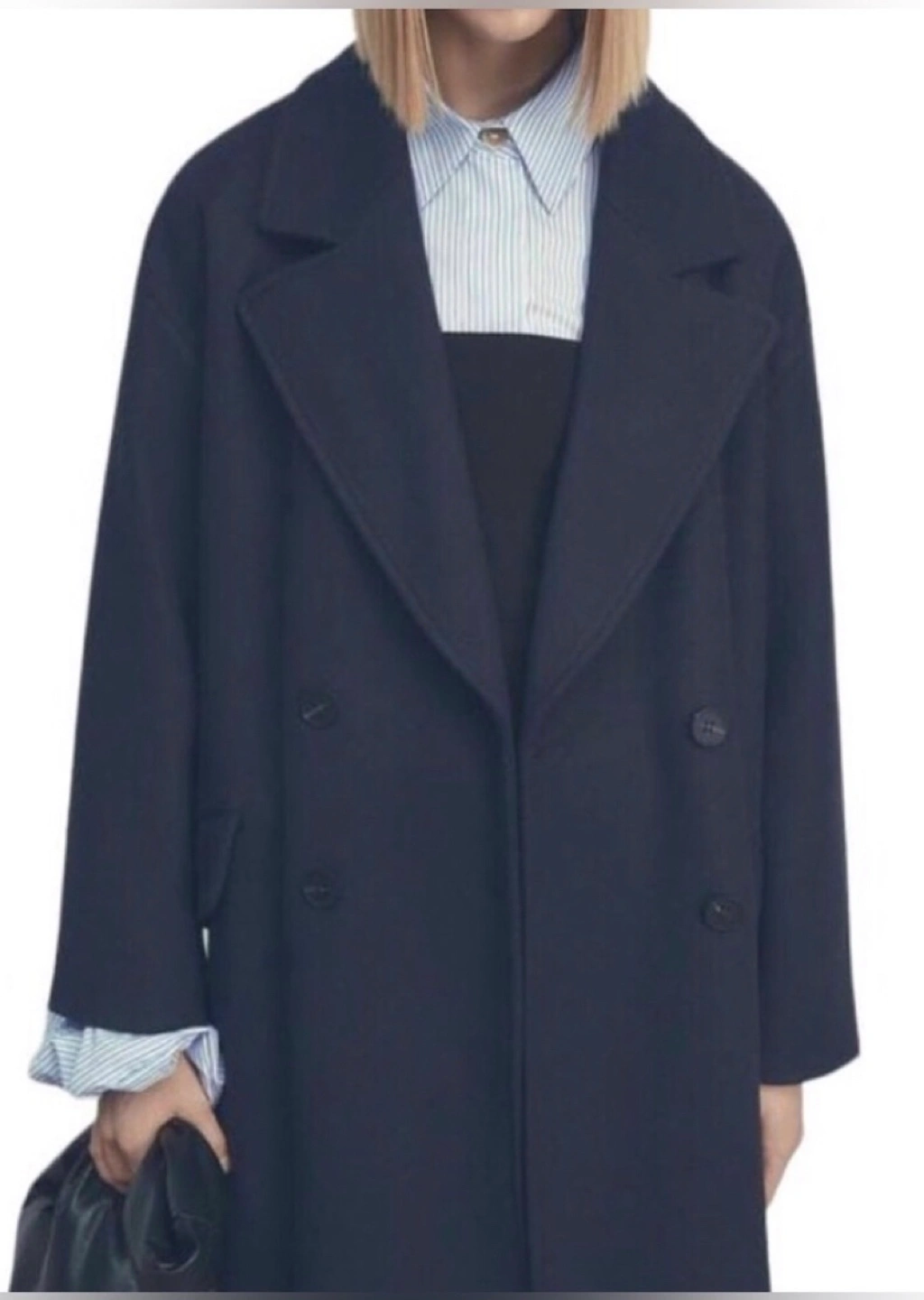 Trend looks Navy blue coat, double breasted with two flap pockets. Long sleeves, long length. Small New