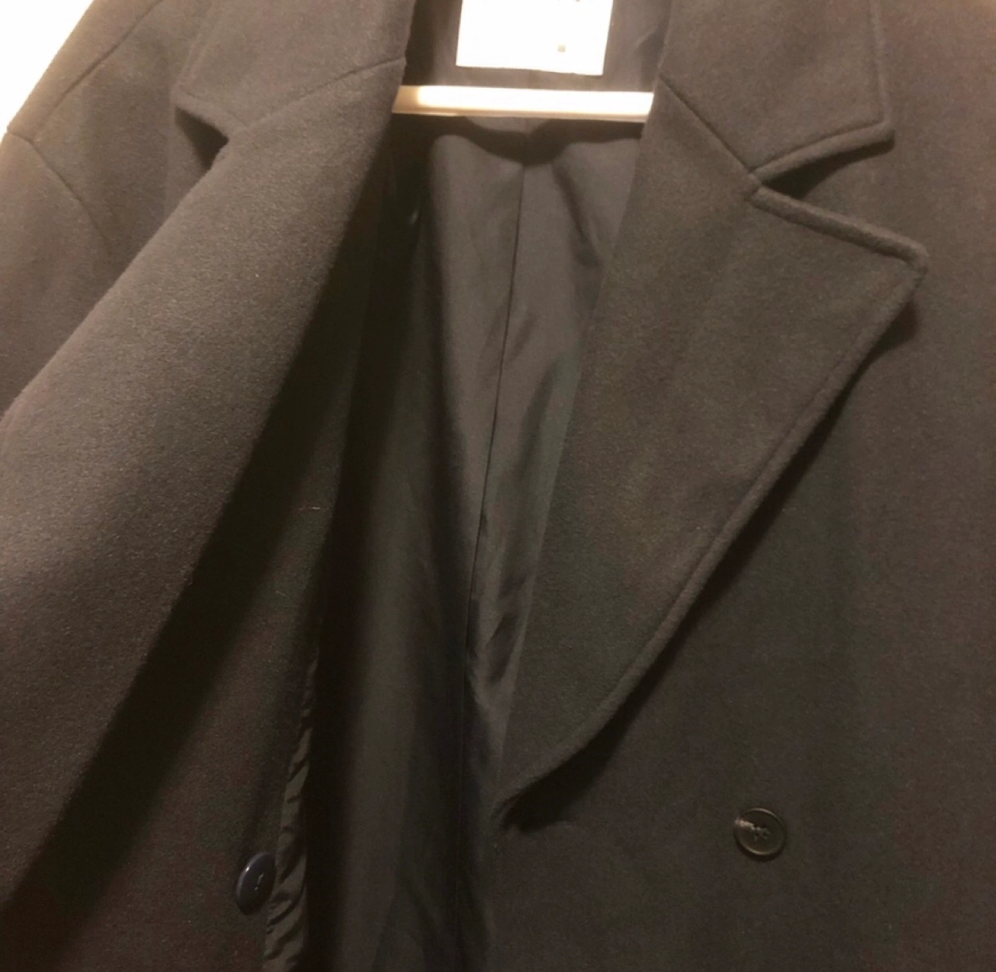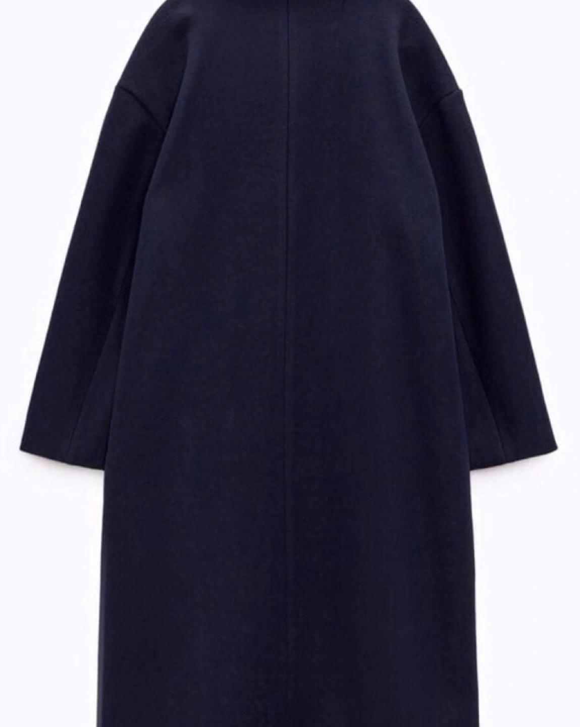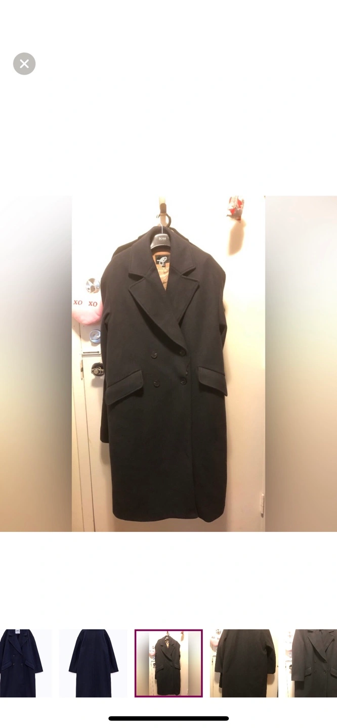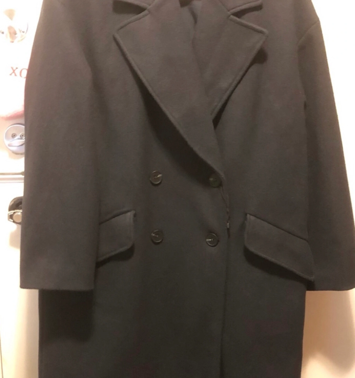 Trend looks Navy blue coat, double breasted with two flap pockets. Long sleeves, long length. Small New
