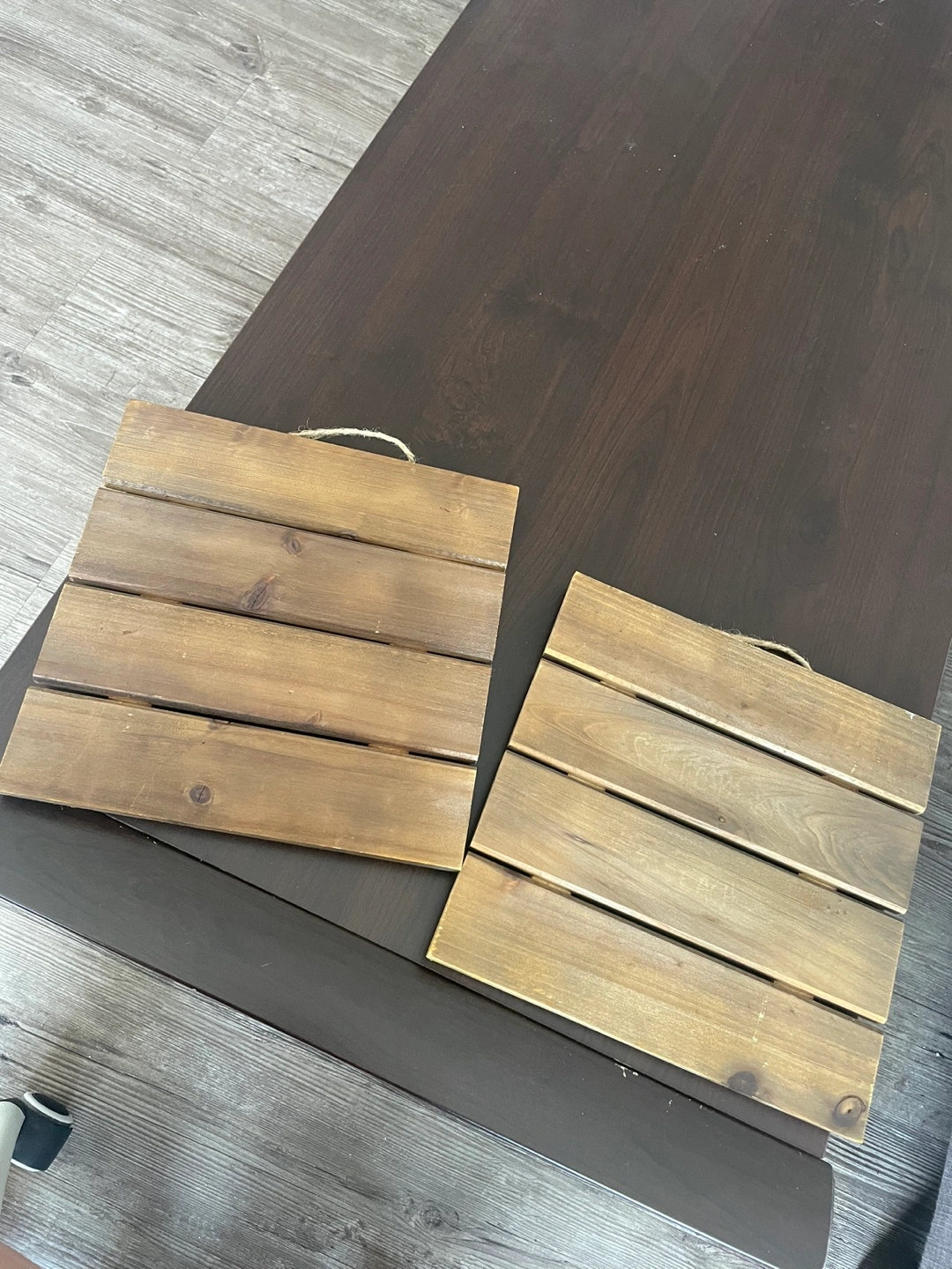 Two wooden wall decor signs with rope for hanging. One has writing on it. $4 for both Cash and pick up only. Pick up location near don mills & Eglinton