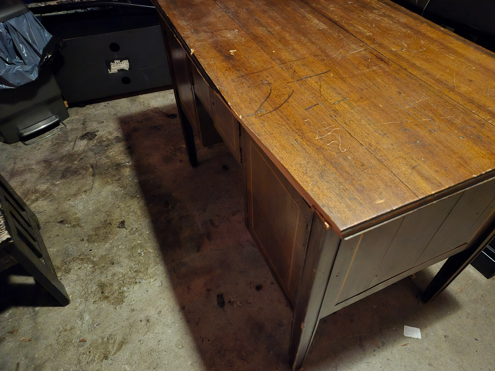 Solid wood desk with 6 drawers, slightly chipped on the top edge. $50 obo $10 delivery pickup available