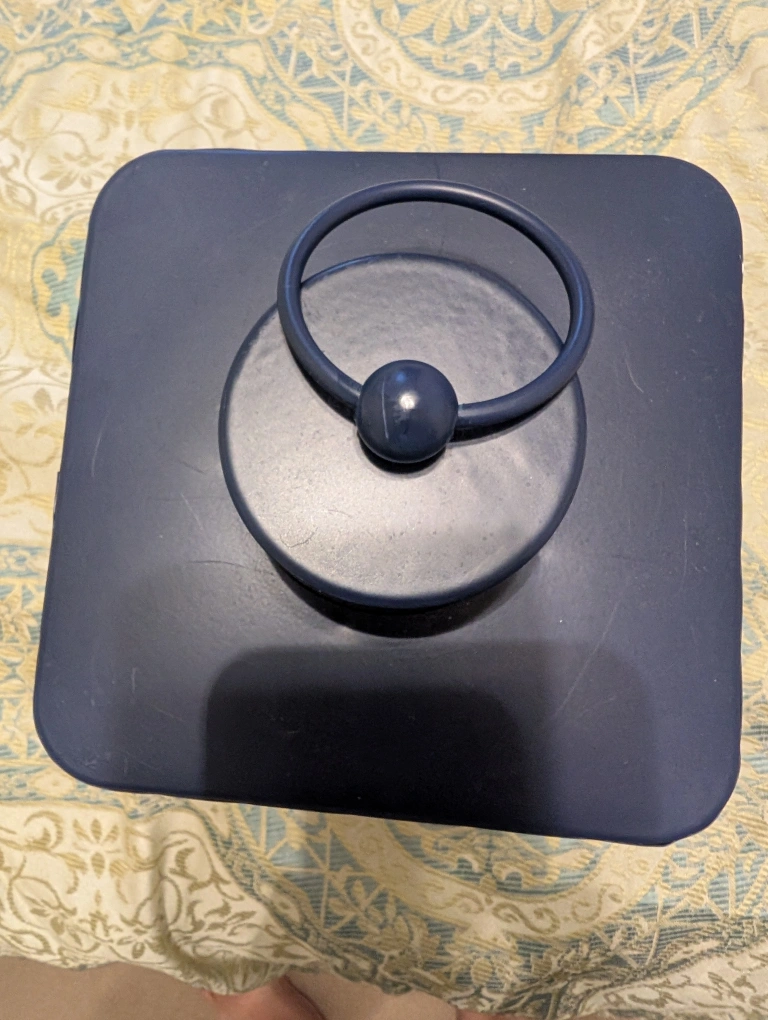 Square metal lantern with a handle, decorative black metal design, and a battery operated light. Hampton Bay Designer - 3 Lamps x 10 = $30.00