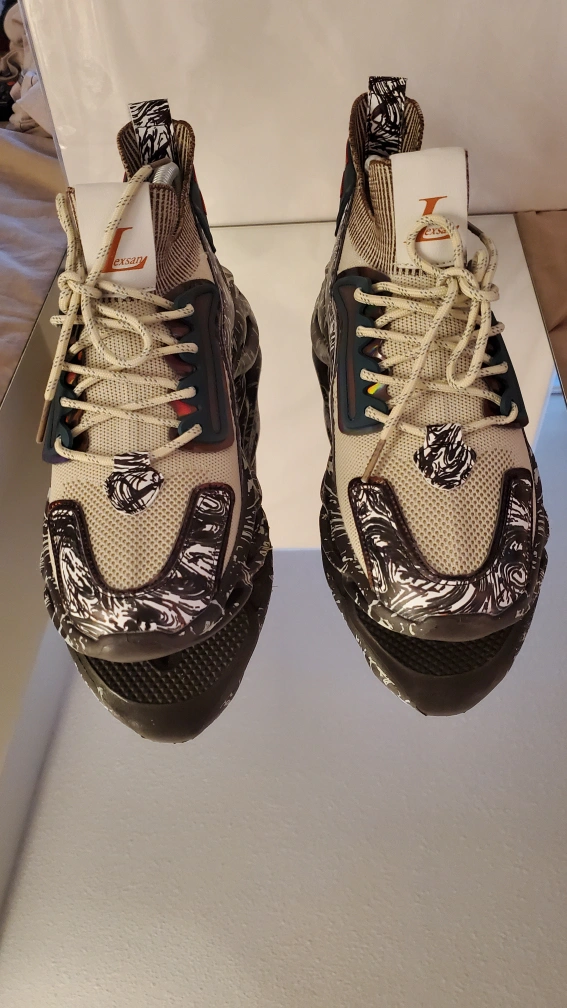 SOFI brand sneakers, beige with black and white pattern, size 10