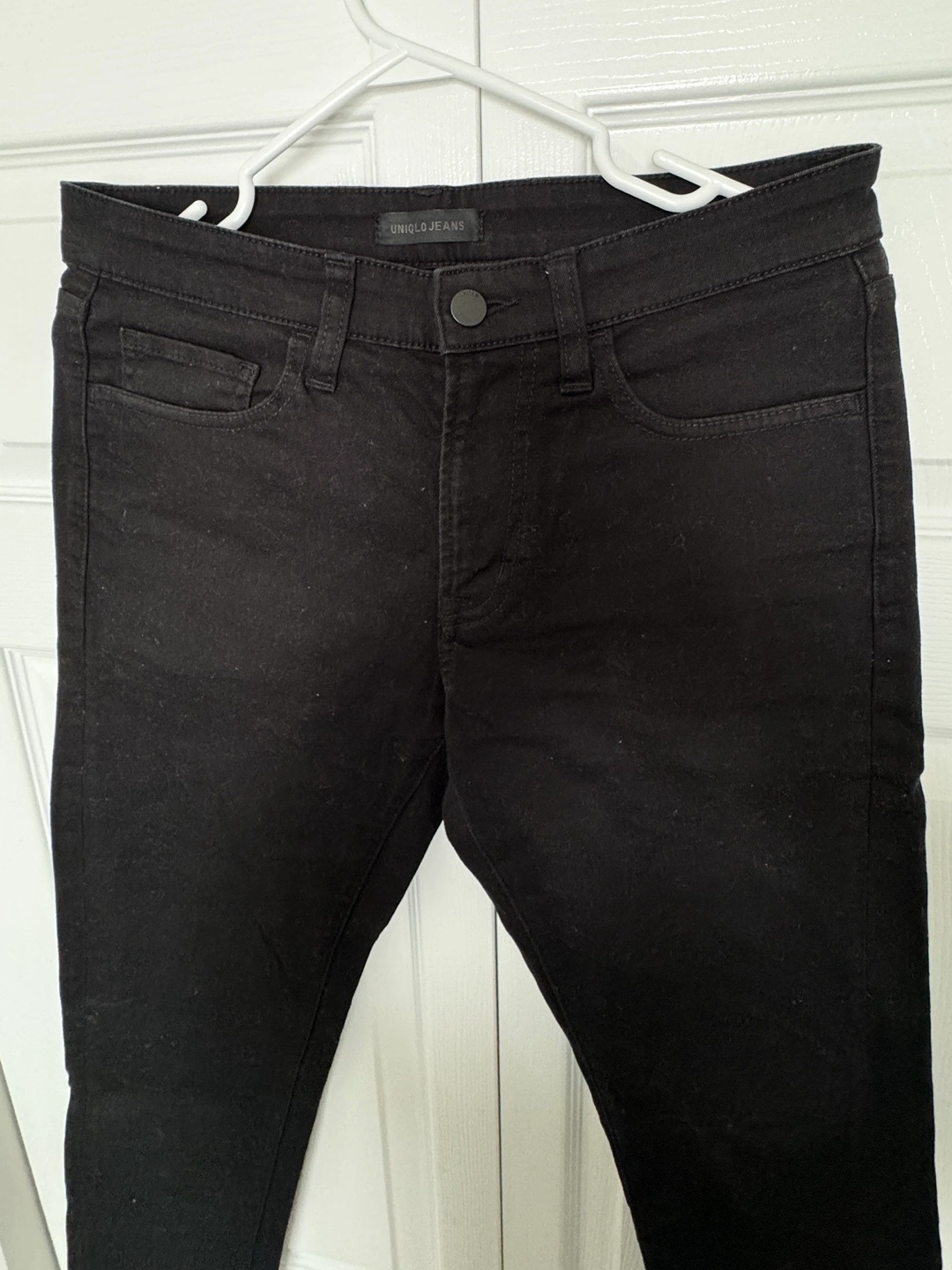 Uniqlo Black skinny jeans, low rise, tapered. Size 28/70 cm. Now it tight now me due to weight gain. Pet free smoke free bug free home. Pickups only. Please check my other listing as well.