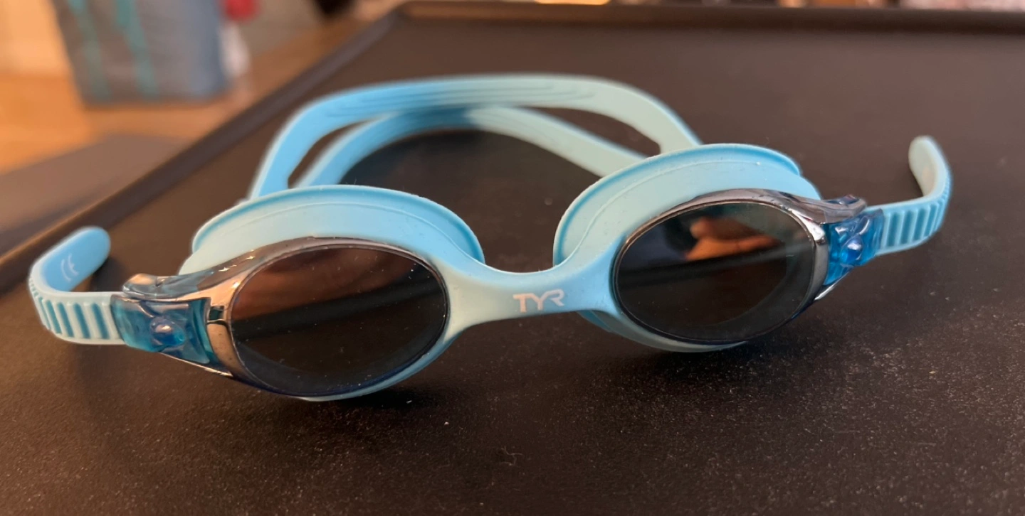 Blue swim goggles with anti-fog lenses. Used but in good condition.