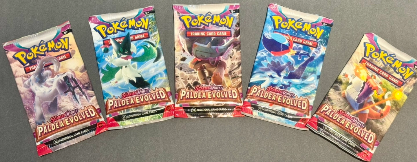 Paldea Evolved Brand New Sealed (Unopened) All Sealed Pokemon Packs $15 each FIRM have multiples if need more all packs are from Booster boxes or Tins or Box Sets Pick up North Delta 84th and Nordel