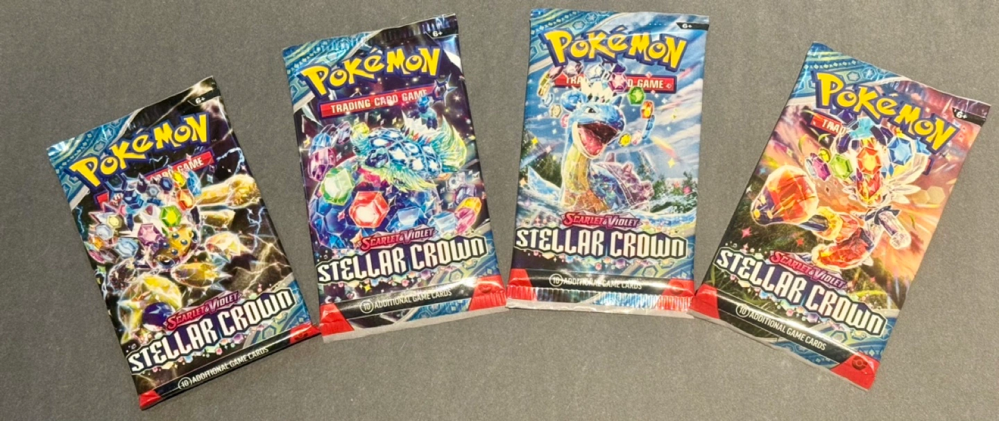 STELLAR CROWN Brand New Sealed Unopened Pokemon Packs $10 each have multiples if need more all packs are from Booster boxes or Tins or Box Sets Pick up North Delta 84th and Nordel