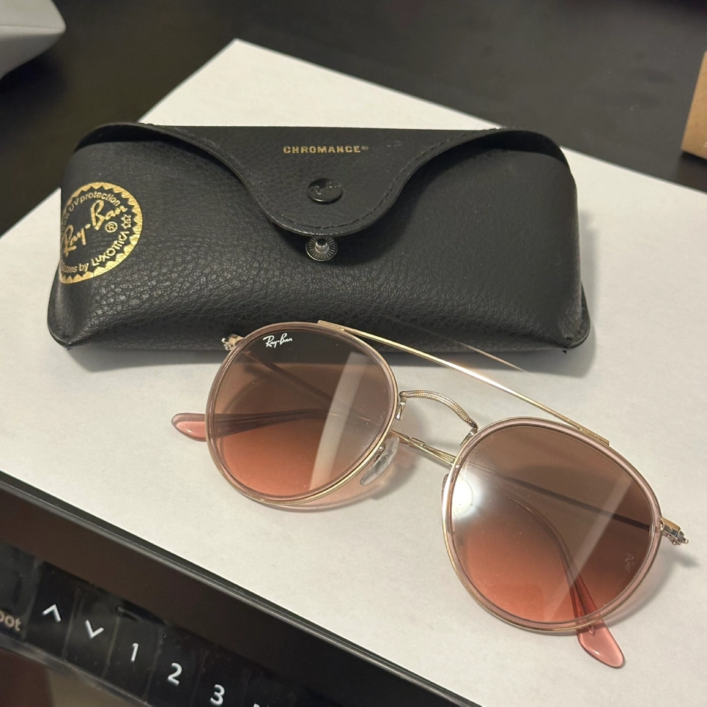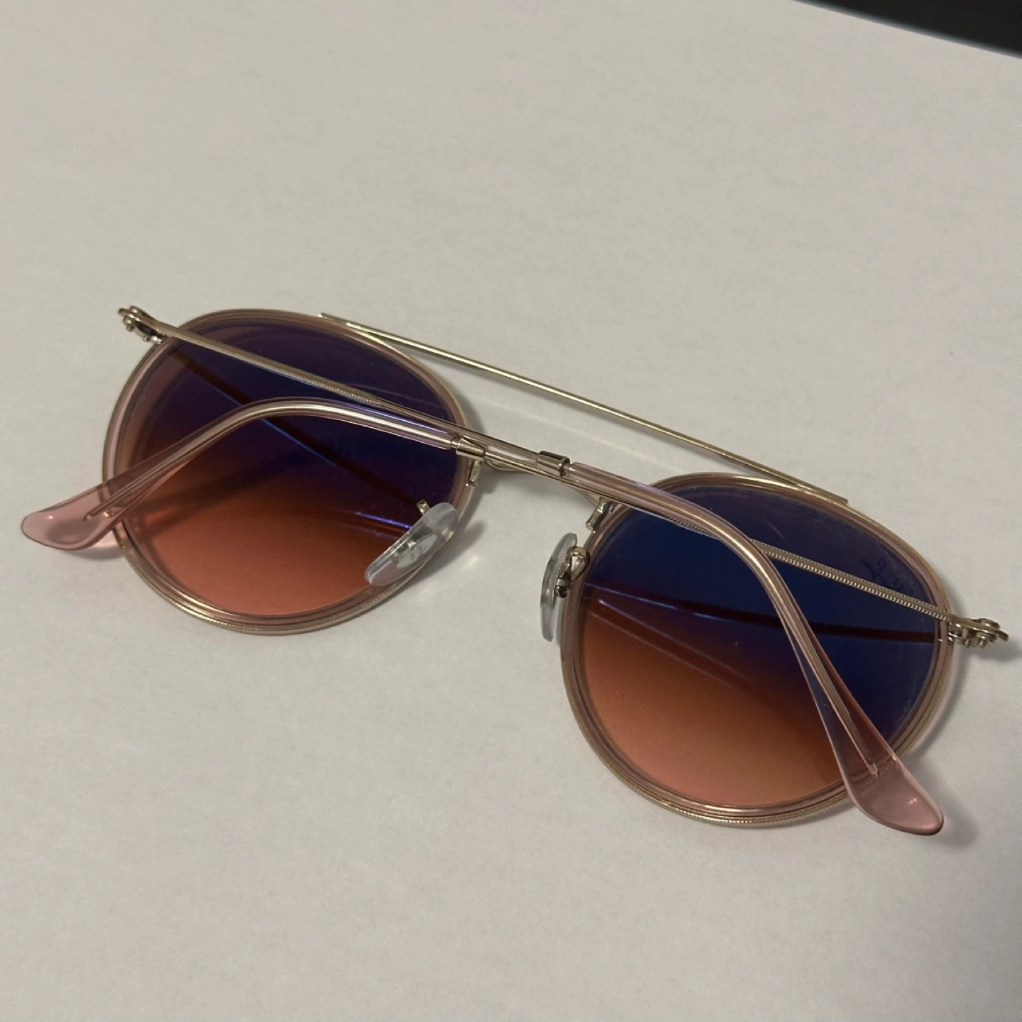 Ray ban round double bridge sunglasses (Gradient pink brown colour). Retails $296 Item code rb3647n 9069a5