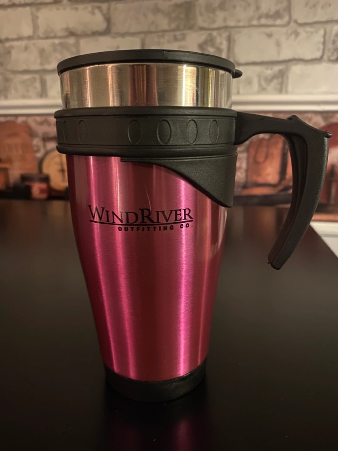 NEW!!! Stainless steel travel mug with black lid and handle. Pink colour. Great condition! With tag on bottom with price $12.99 Great for hot or cold beverages! Never used. Cash only. Pick up Cawthra and Lakeshore area in Mississauga.