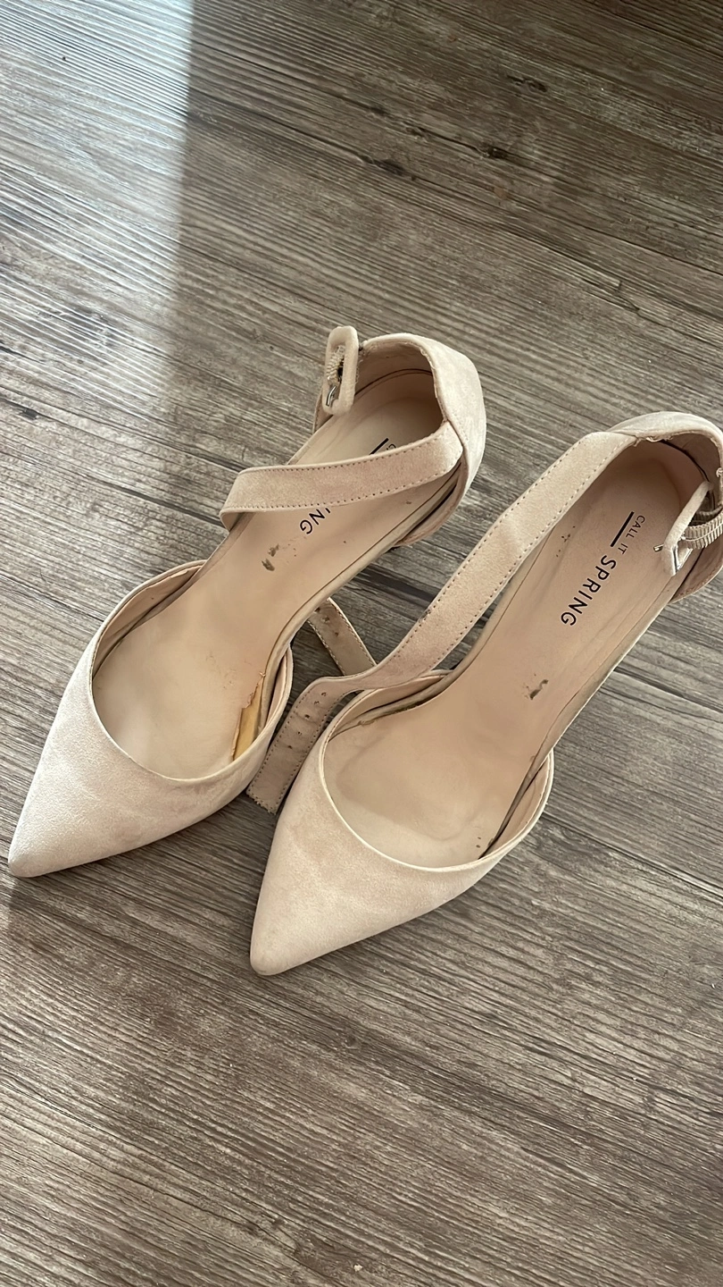 Nude heels with ankle strap. Size 7.5 Really worn out but still good to wear. Cash and pick up only. Pick up location near don mills & Eglinton
