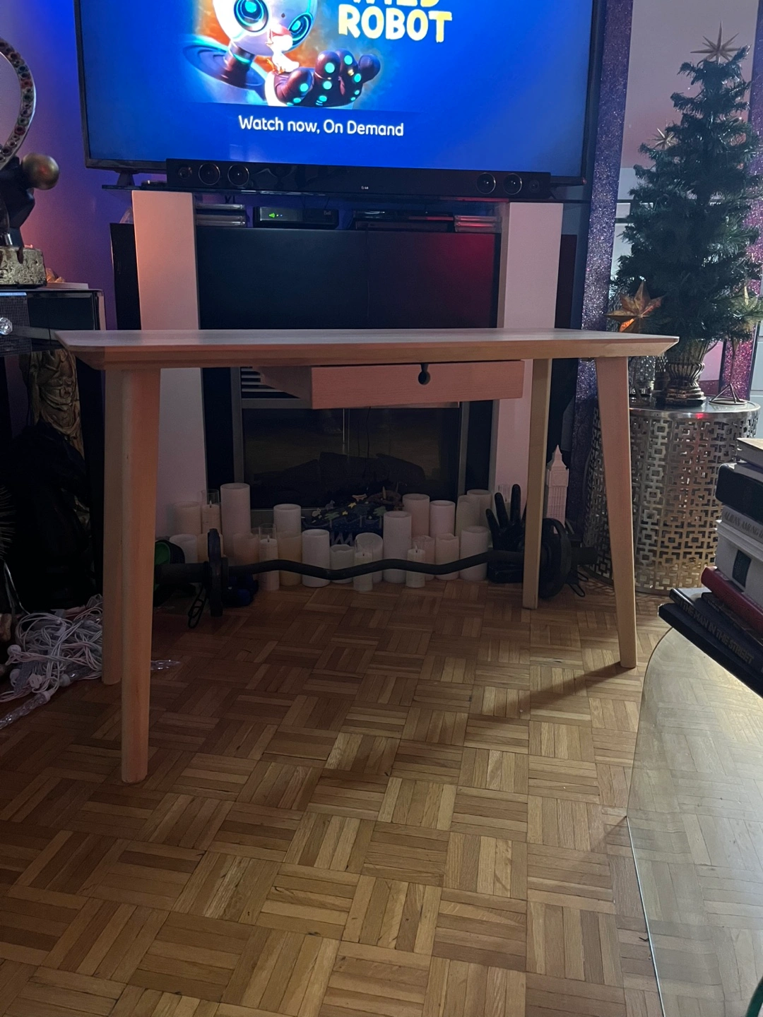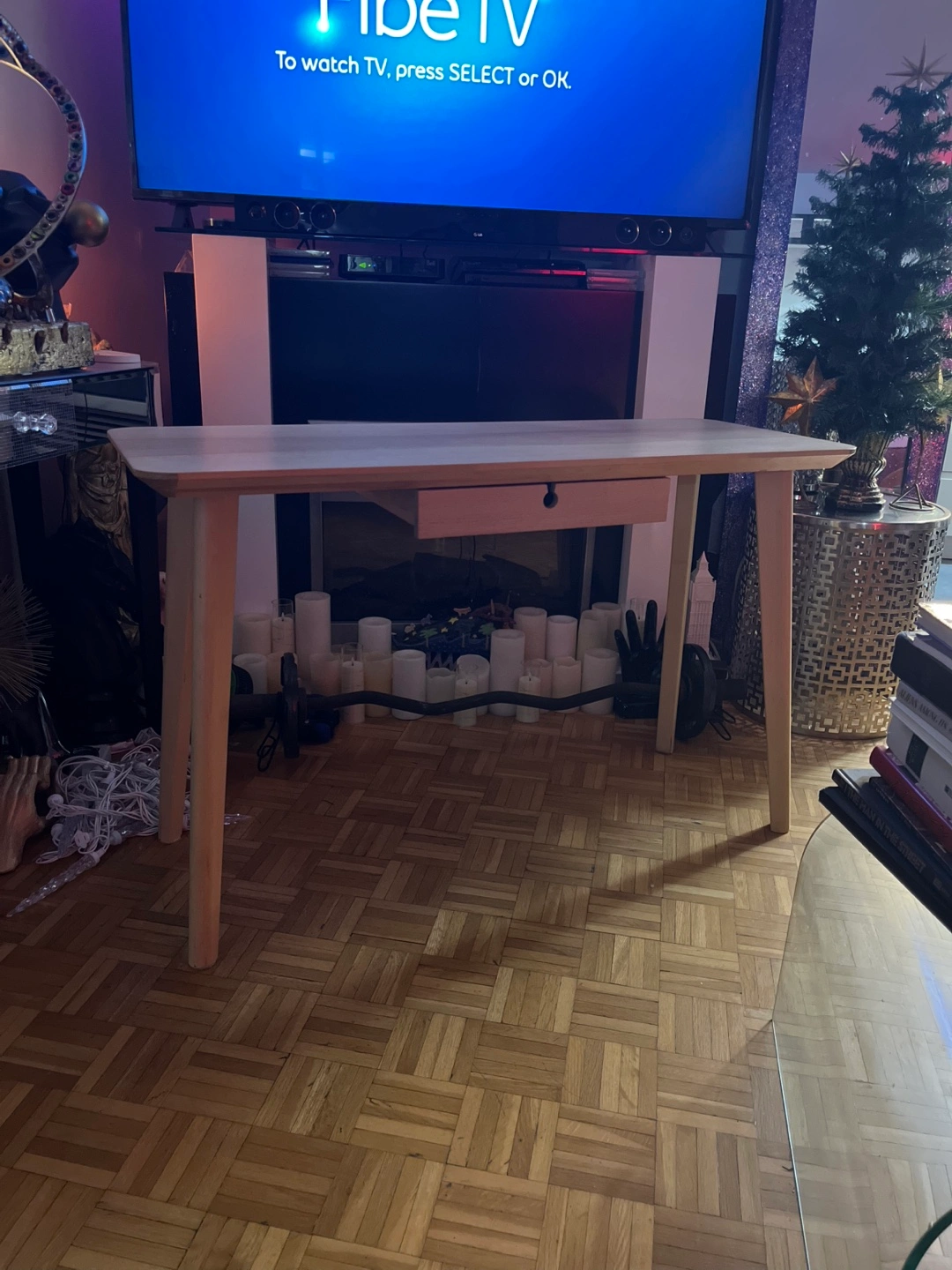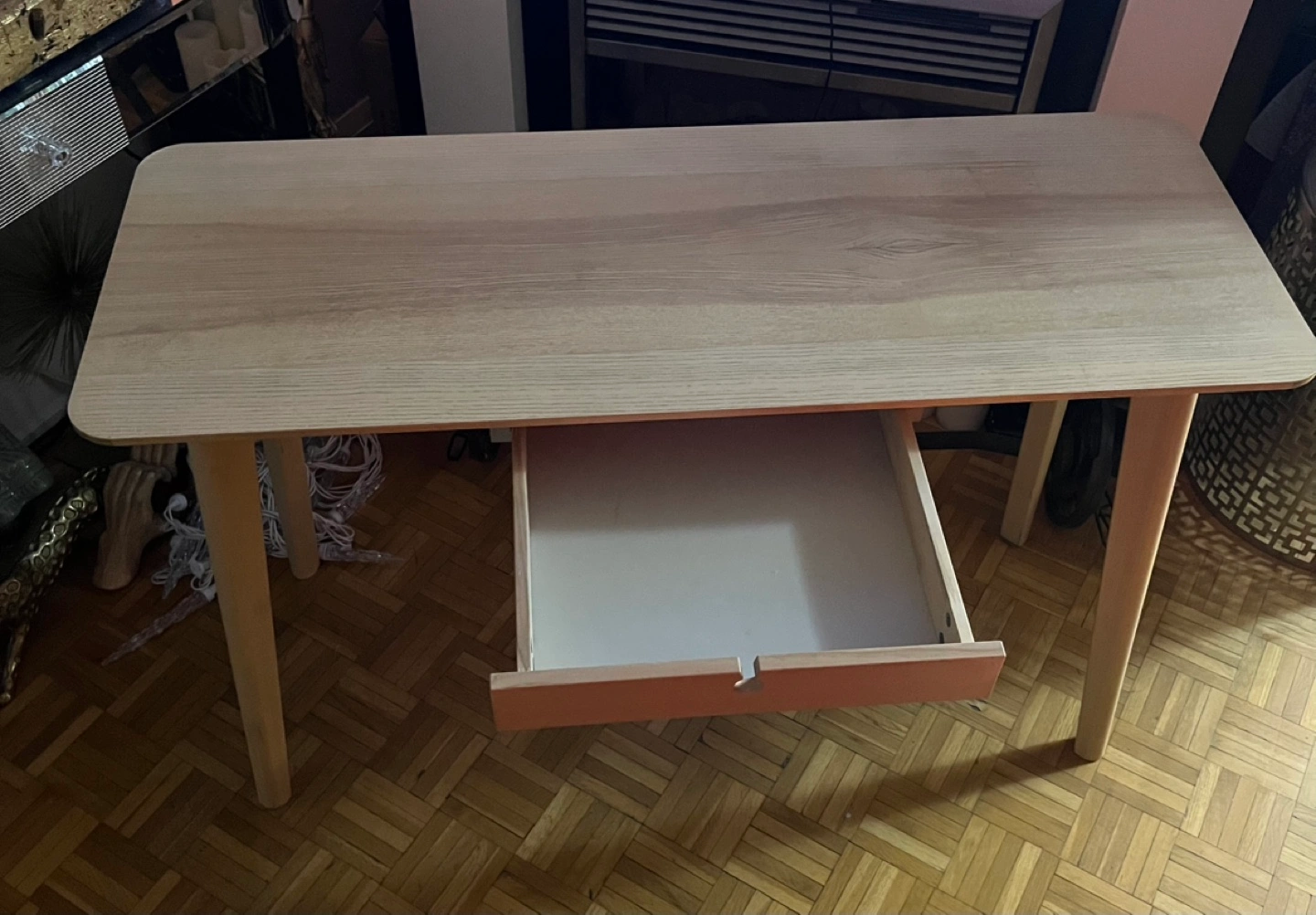 Study table with one drawer. Table is made of wood. Includes hardware but 2 of the hardware missing lost in the move you can get them from IKEA.. Table can still be set up without those. assembly required. You can pick up by Carlton and Jarvis area Serious enquiries only please. Too many people wasting my time and low balling and not following up.