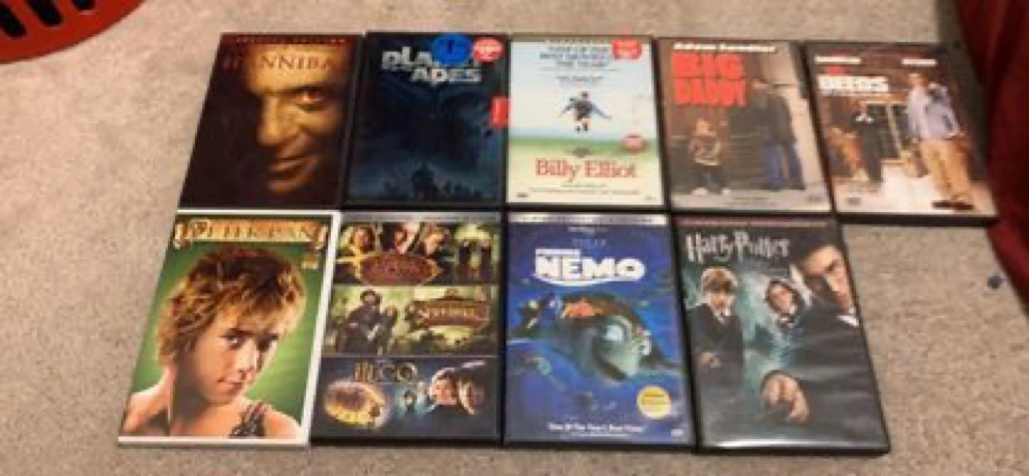 Lot of eight DVD movies. Titles include: Hannibal, Planet of the Apes, Billy Elliot, Big Daddy, The Princess Diaries, The Lord of the Rings: The Fellowship of the Ring, Finding Nemo, Harry Potter and the Sorcerer's Stone. Movies - $3