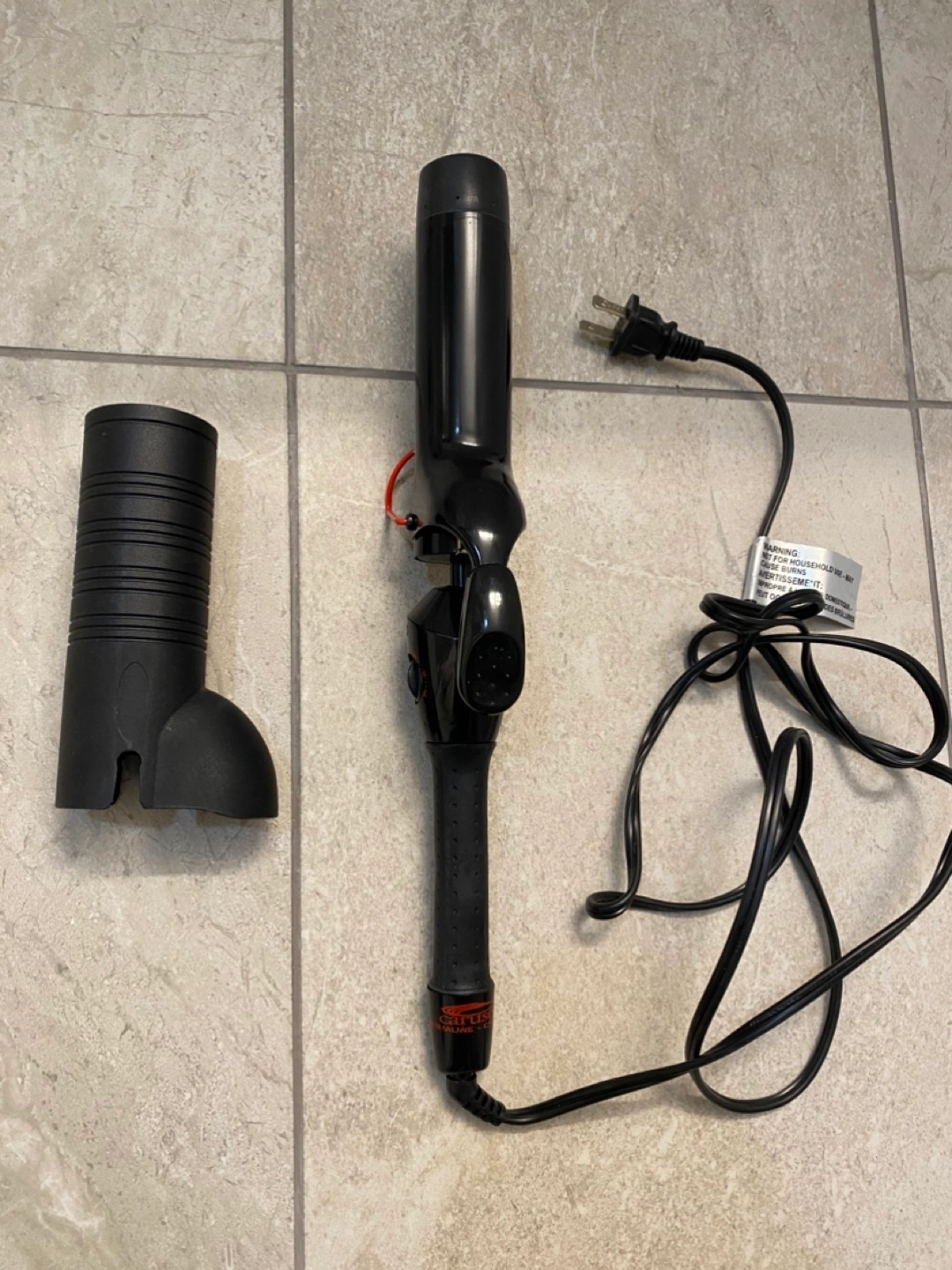 Selling for a family member. Curling iron with temperature control and heat resistant stand. Plus plastic cover. In great working condition.