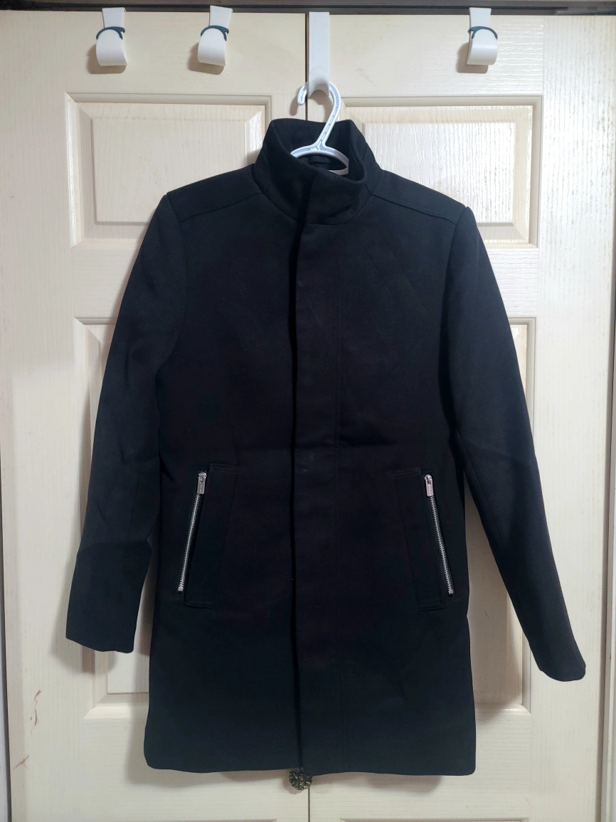 Black coat with a stand-up collar and zipper pockets. Skinny fit Haven't use it since last Fall. I just pulled it out of a vacuum sealed bag. Pick up near BCIT Burnaby