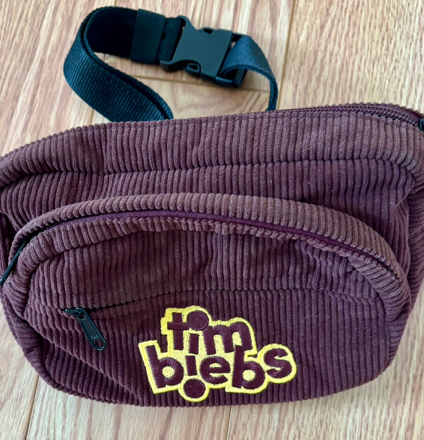 Brown corduroy bum bag with Justin Bieber logo. In great condition. Adjustable strap. Cash and pick up ONLY Won’t respond to unreasonable offers