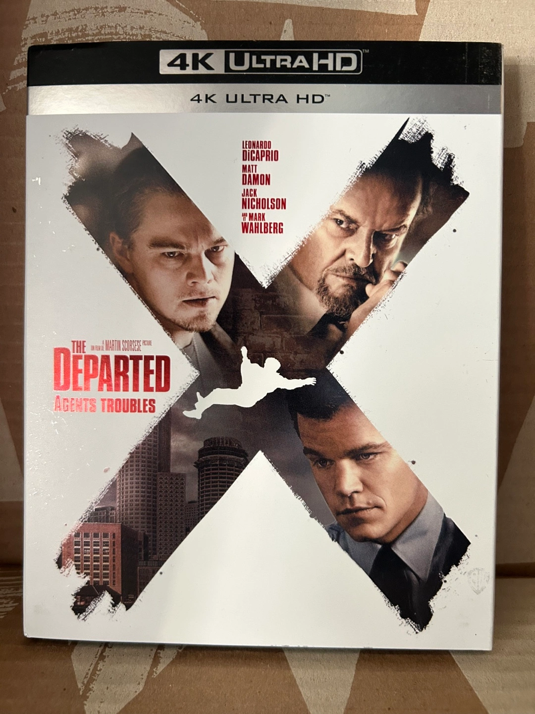 4K Ultra HD Blu-ray of The Departed starring Leonardo DiCaprio, Matt Damon, Jack Nicholson and Mark Wahlberg. Factory sealed.