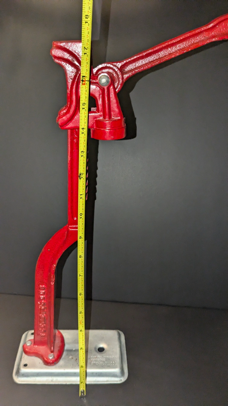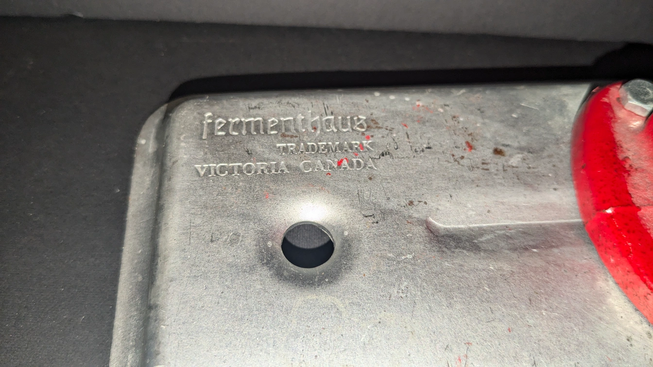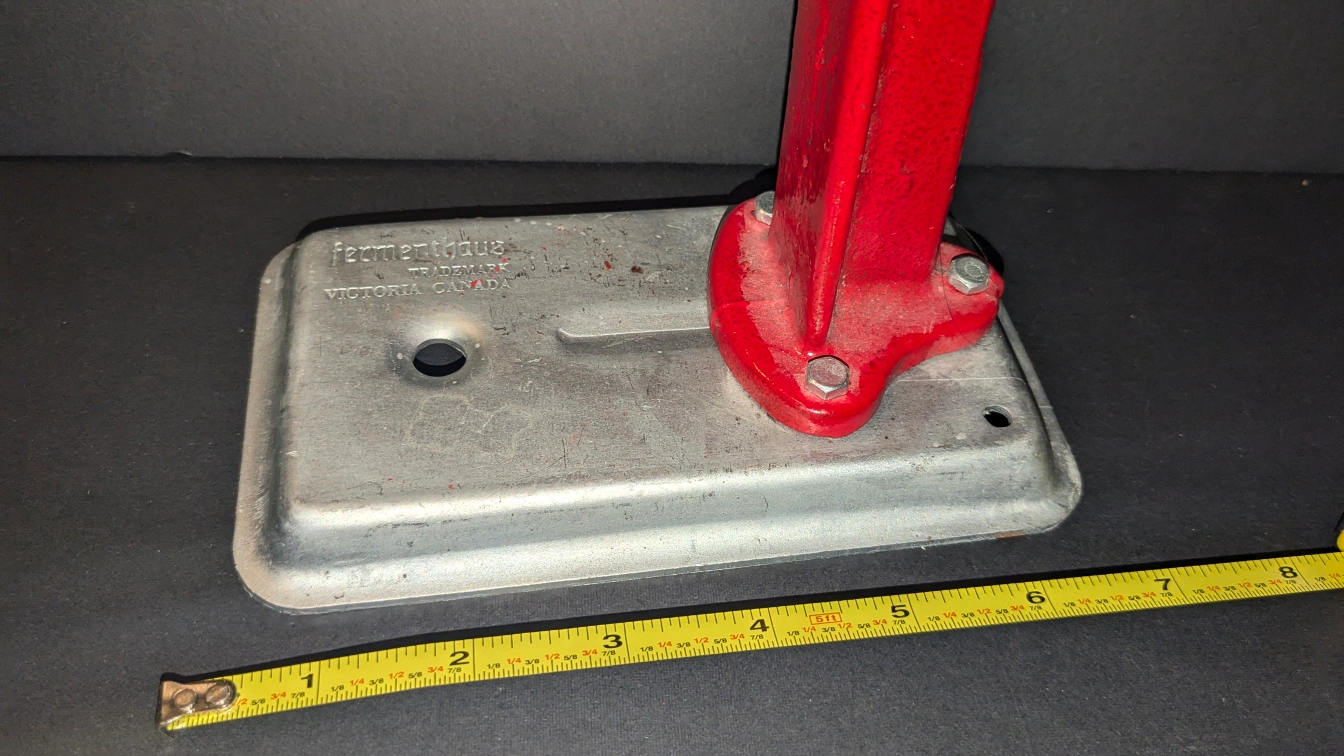 Vintage Fermenthaus Bottle Capper/Corker. Beautiful vibrant bright Red cast iron with a shiny metal base. 17 inches tall with 5 inch base. 3 Holes in the Metal Base allows you to bolt the metal base to a platform for stability while bottling/corking. CANADIAN MADE Made by Fermenthaus in Victoria, Canada Make us an offer Thank you for looking at our listing Please ask any questions. We are happy to negotiate on multiple listings.