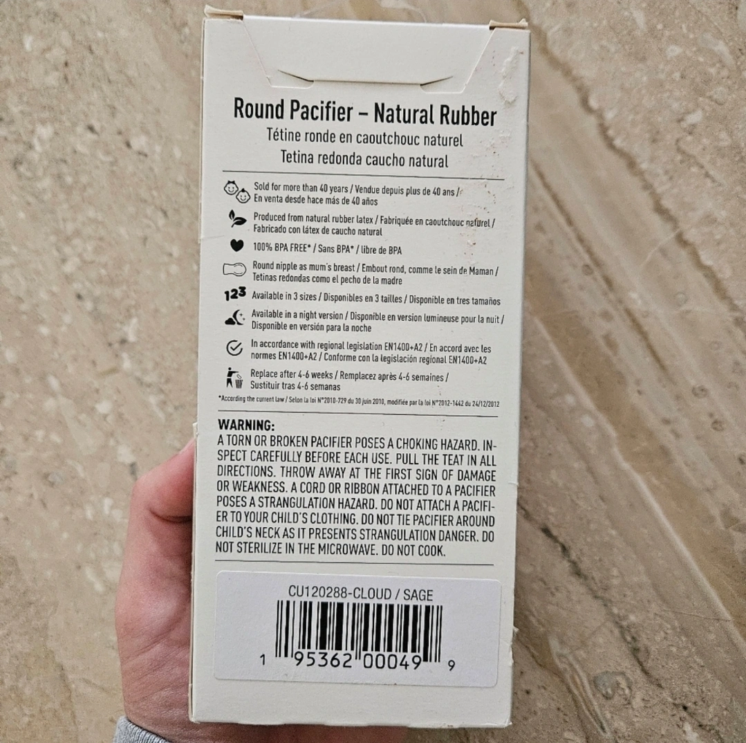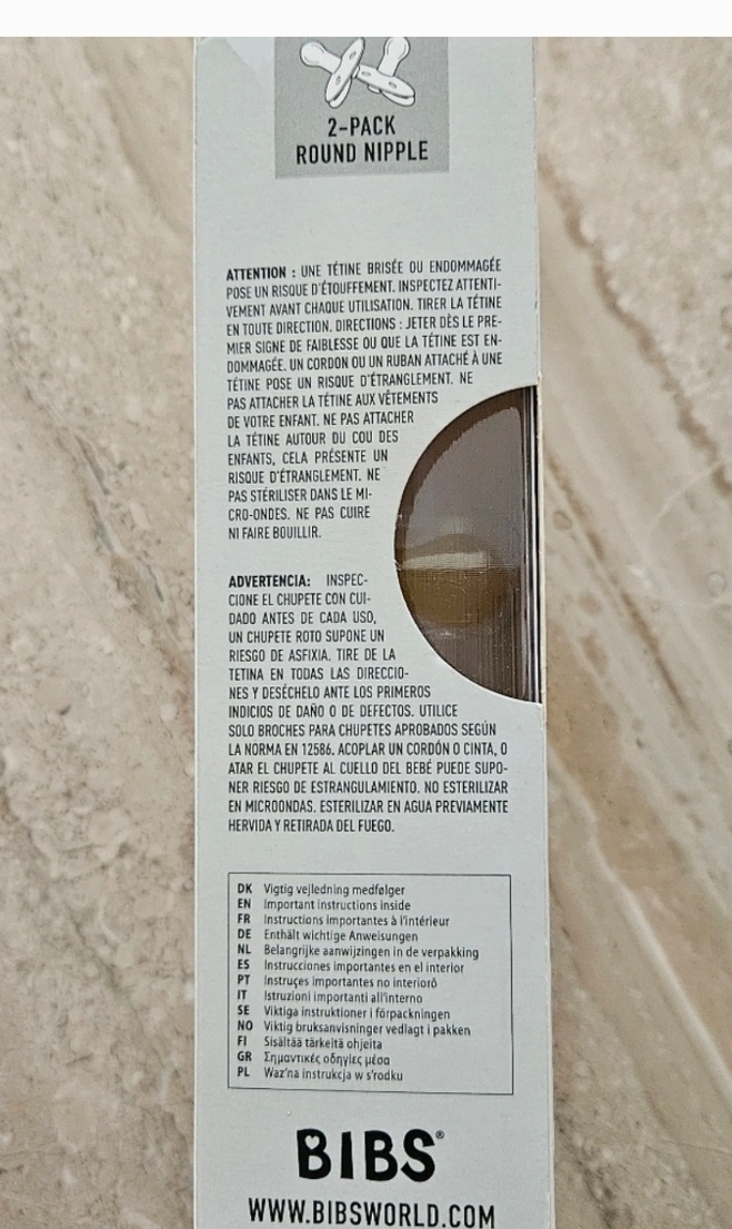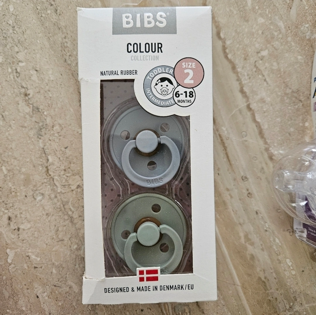 made in Denmark brand new never opened packaging slightly ripped Pack of 2 pacifier in size 2 which is the suitable ages 6-18 months, -100% free from BPA, PVC, and phthalates. -Sanitize before first use by placing pacifier in boiling water in 5 minutes.