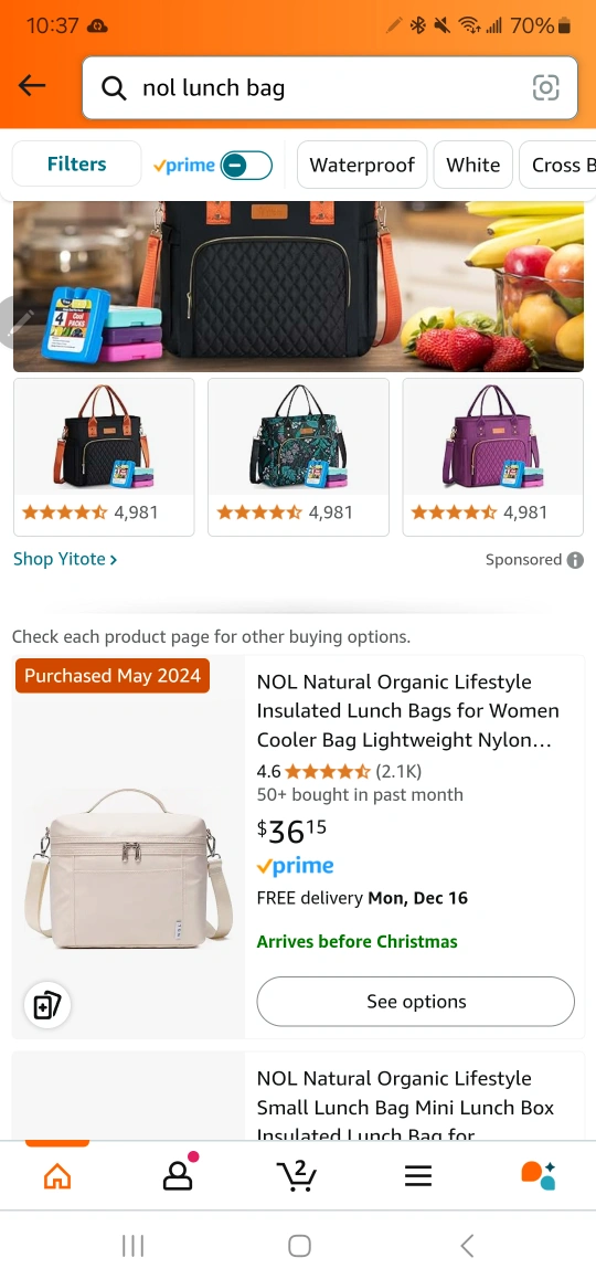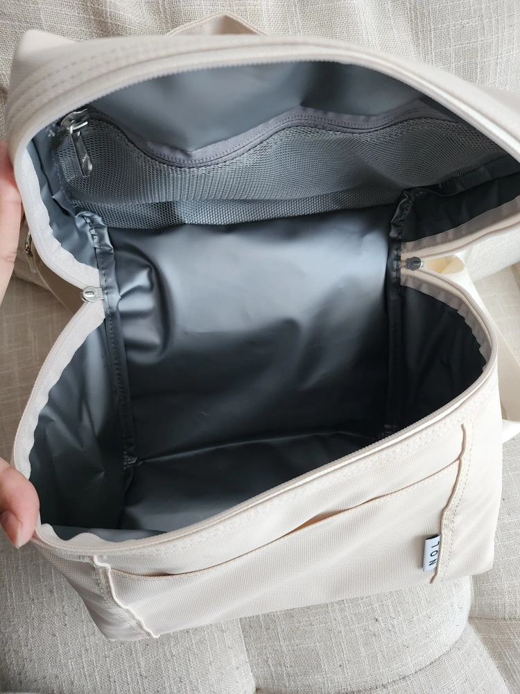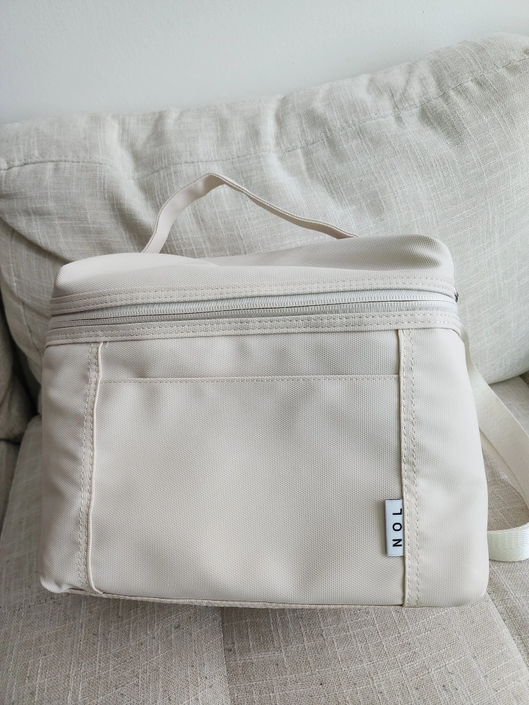 Insulated lunch bag with an adjustable shoulder strap. Has a zippered top opening and multiple interior pockets. The inside is lined with a silver material. Excellent for keeping food cold or warm. purchased price $36 lightly used - still in brand new condition reselling for $15