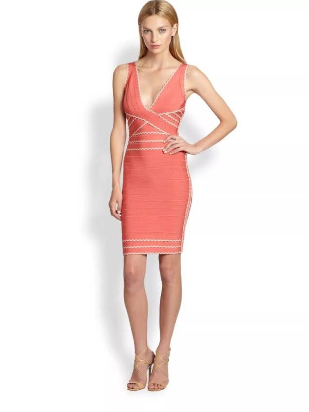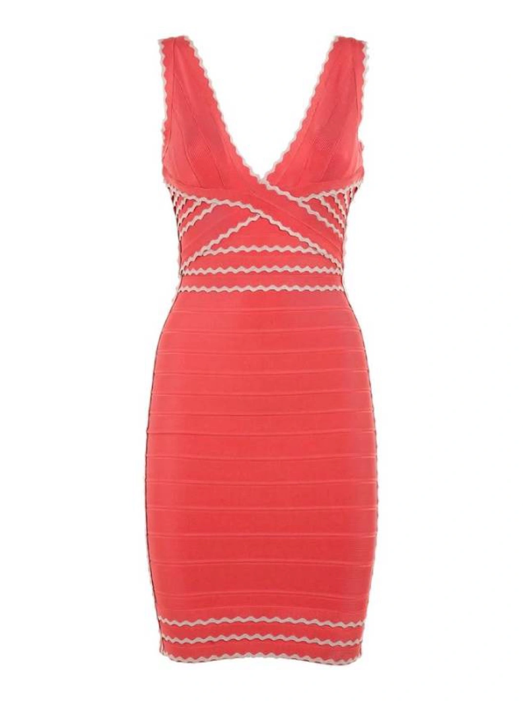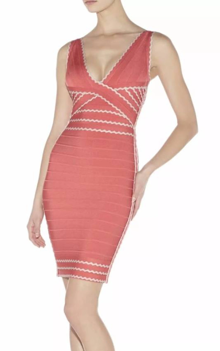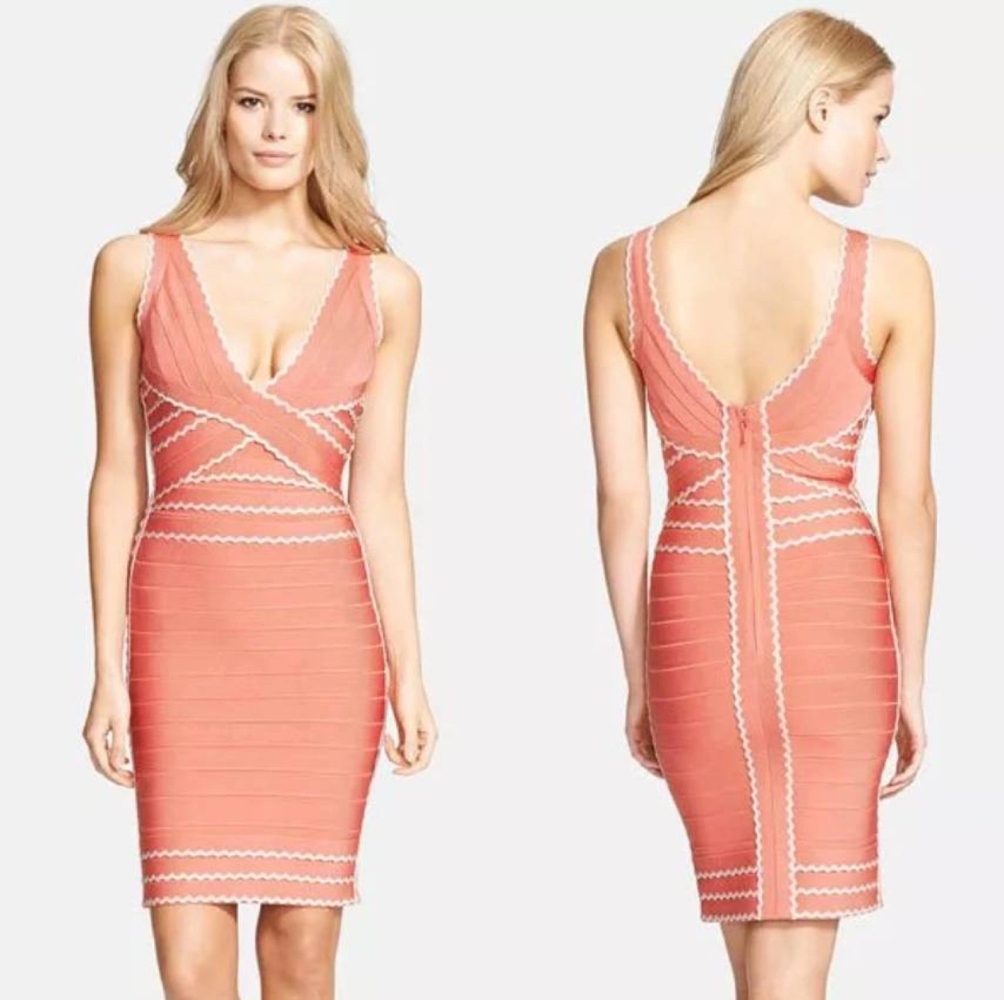 Authentic Herve Leger "Kenna" Scalloped Edge Dress Deep Sea Coral Size Medium Worn once for a photoshoot Perfect condition Original price 2300CAD+tax https://www.thebs.com/en/kenna-dress-herve-leger-22396