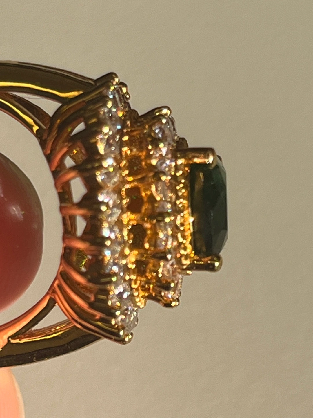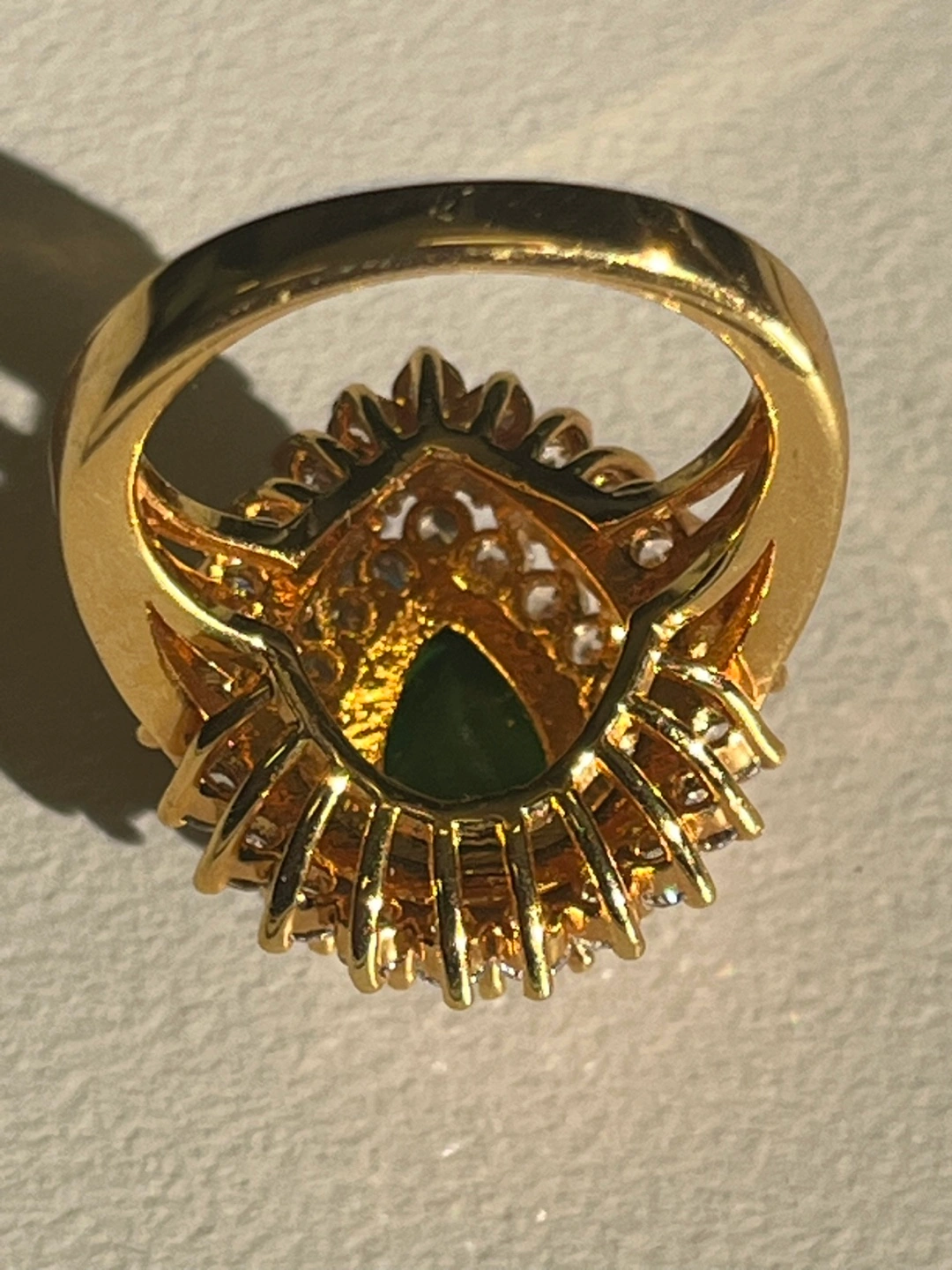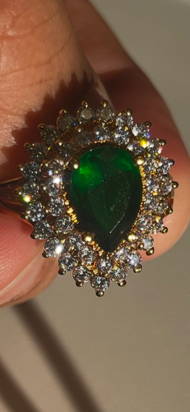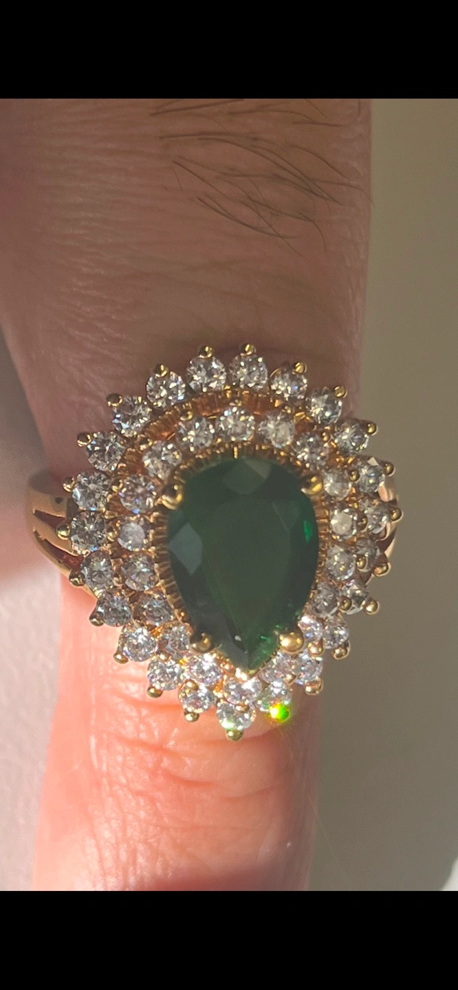 Jackie Kennedy Collection cocktail ring with green stone and CZ 3 tier sparkly ring. Gold plated. You can pick up by Carlton and Jarvis area Serious enquiries only please. Too many people wasting my time and low balling and not following up.