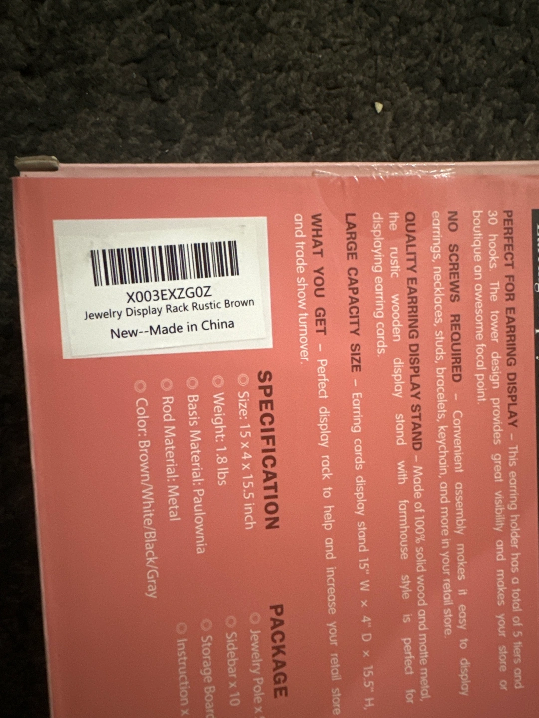 Earrings display stand. Perfect for organizing and displaying earrings and other jewellery. Made of paulownia wood, metal, and screws. New, in box, unused . Pick up NE Marlborough See my other ads