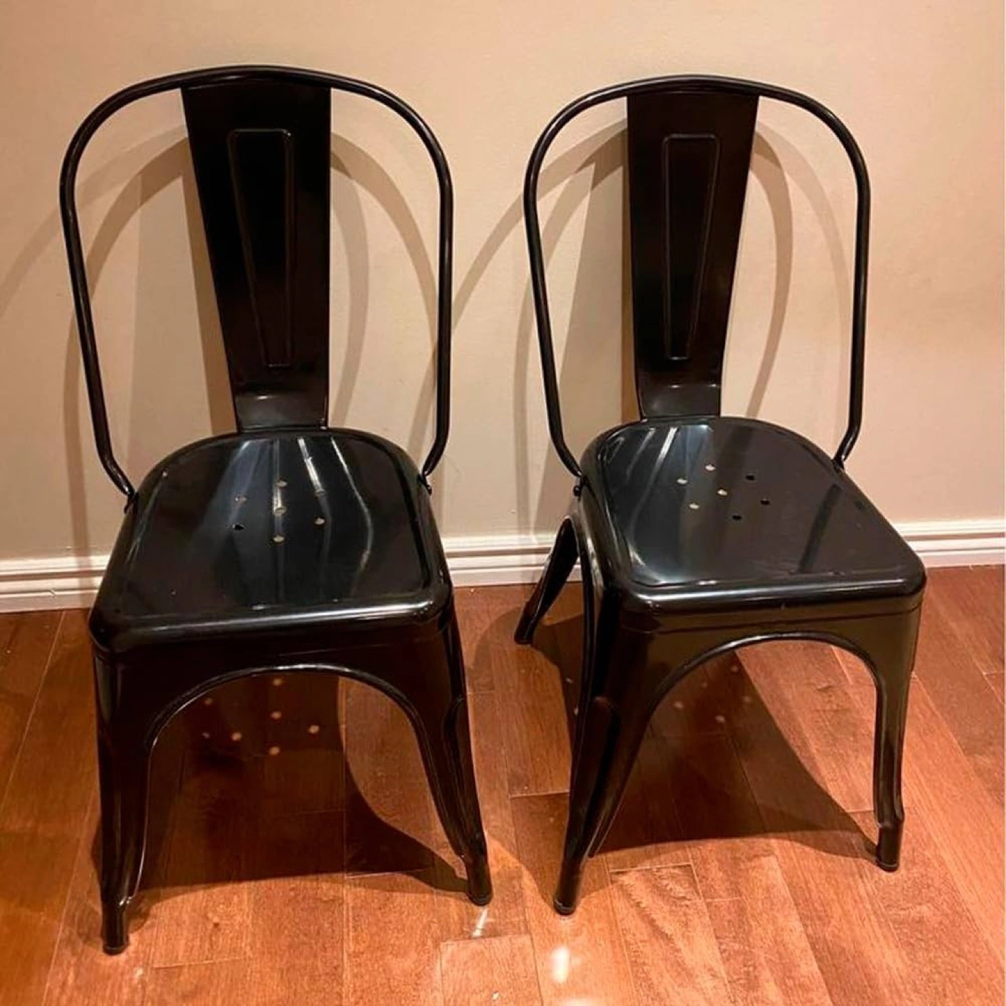Set of 2 black metal dining chairs. Industrial style. Great condition. $50 each