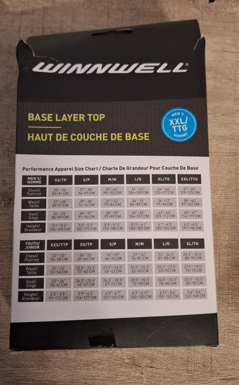 Winnwell Base Layer Youth Long Sleeve Top (Box a little damaged Hockey Fit Soft performance fabric Size: s/p youth junior XL Men's XXL Men's Condition brand new Danforth and Eglington Pick up only